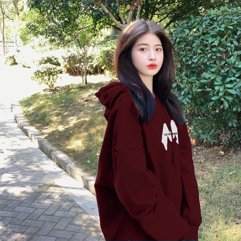 Демисезонная бордовая утепленная толстовка, небольшая дизайнерская куртка, оверсайз