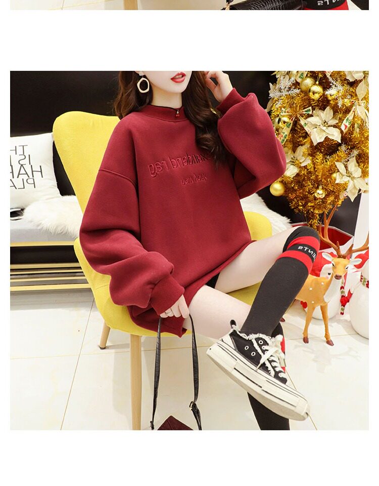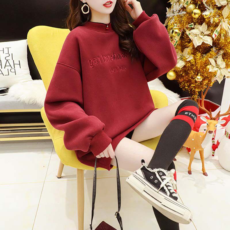 Пуховик, красное длинное термобелье, утепленная толстовка, большой размер, коллекция 2022, свободный крой, средней длины, с вышивкой