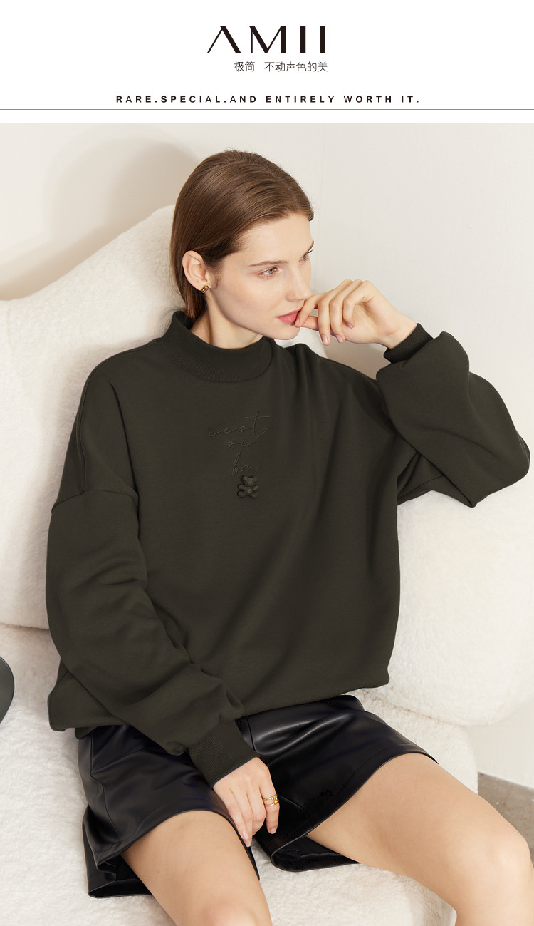 Amii Осенняя трехмерная утепленная толстовка, высокий воротник, с медвежатами