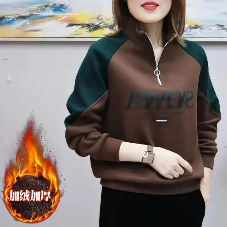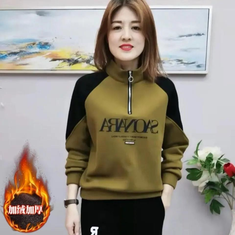 Утепленный лонгслив, куртка, воротник поло, оверсайз, в западном стиле, для среднего возраста, большой размер