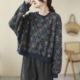 Утепленный ретро лонгслив, трикотажный свитер, оверсайз