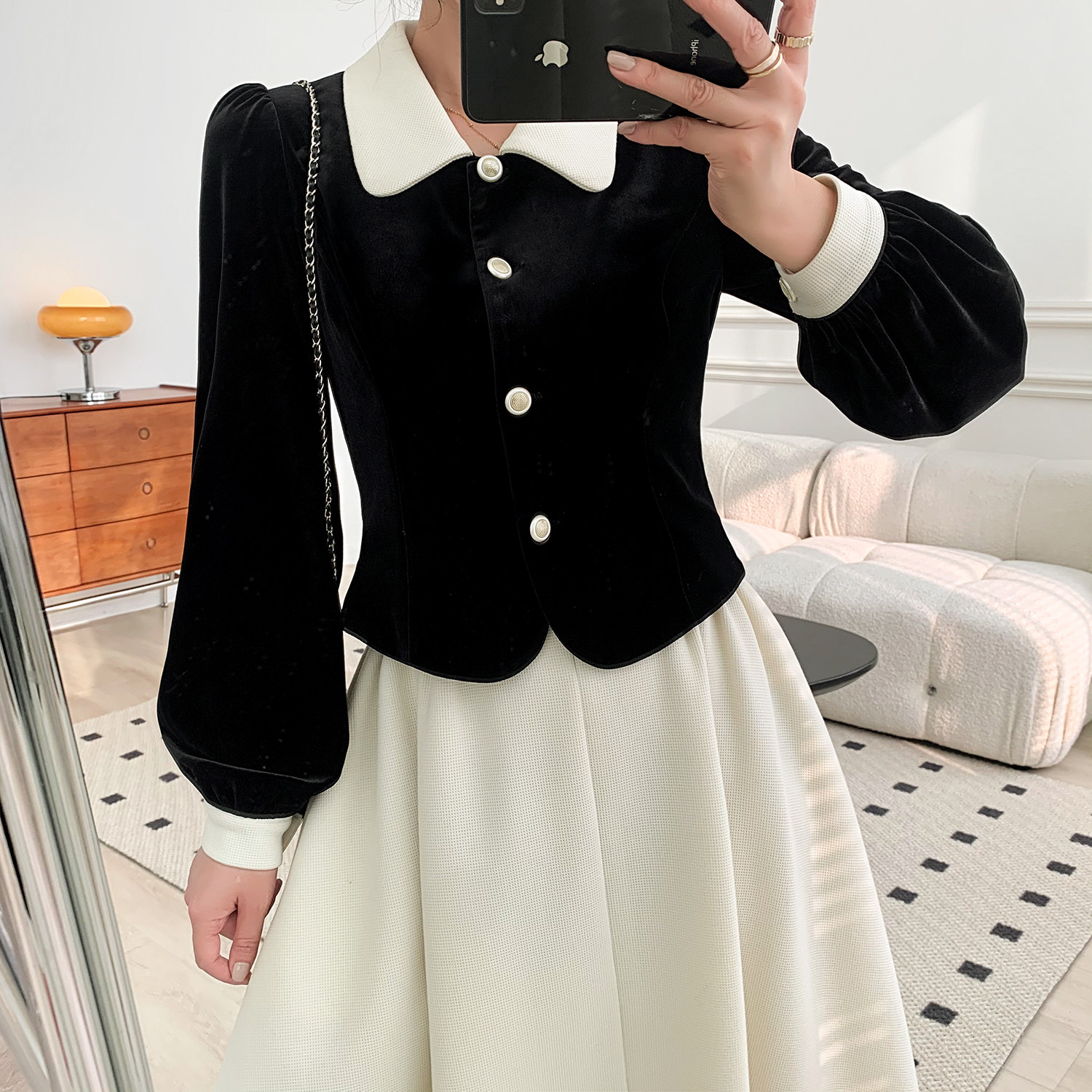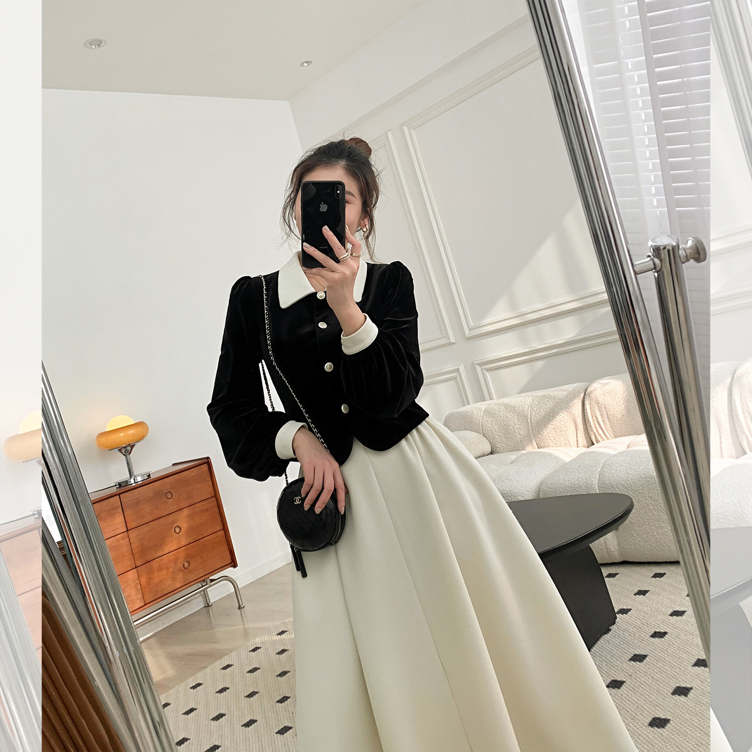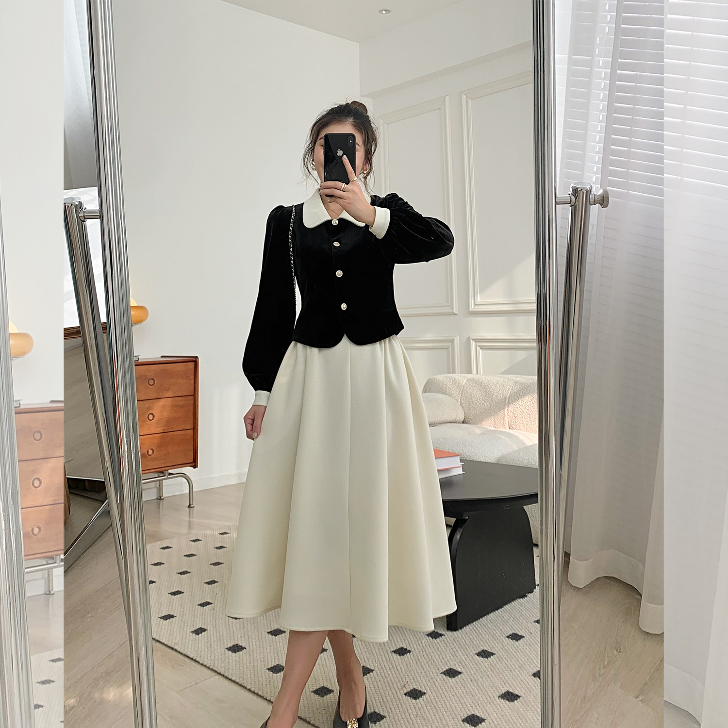 | Цвет: | Черный топ, Абрикосовая юбка |