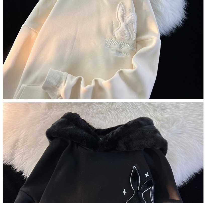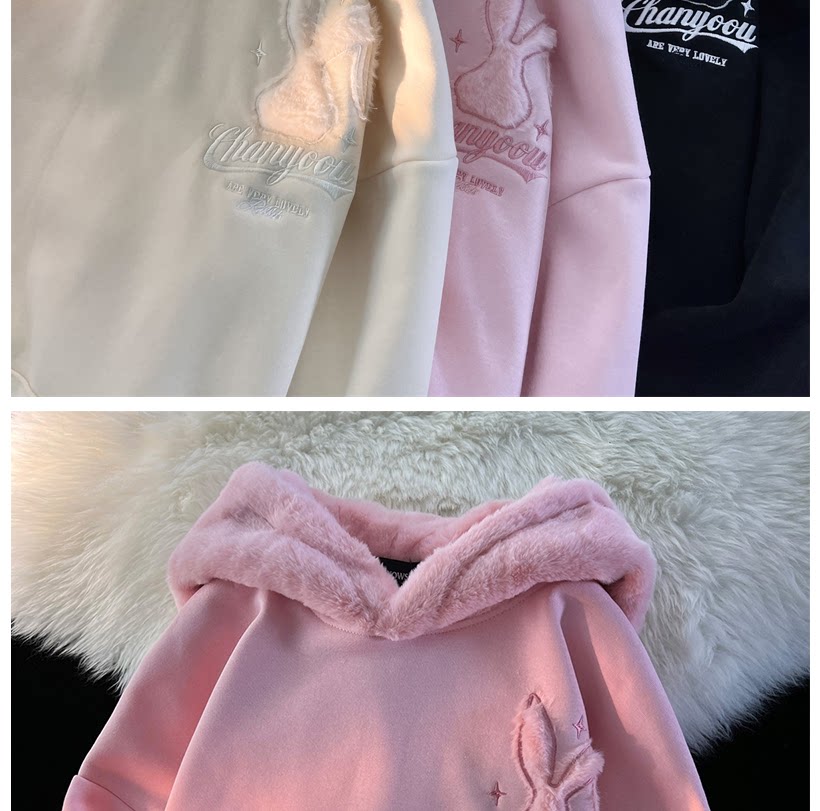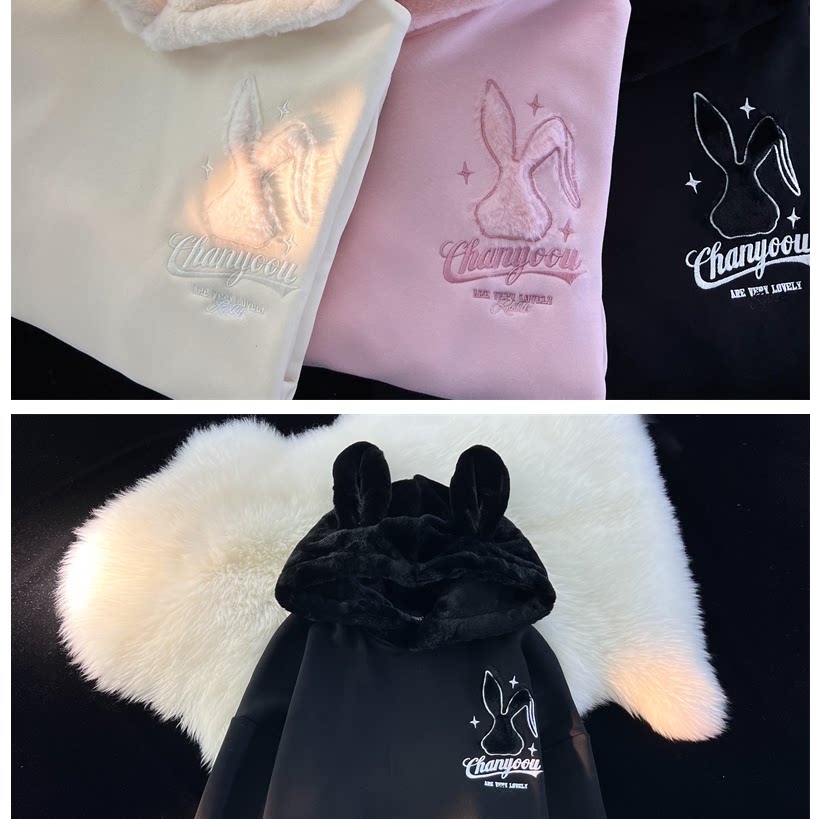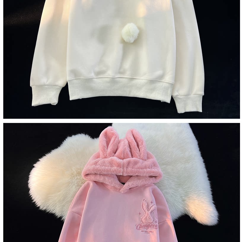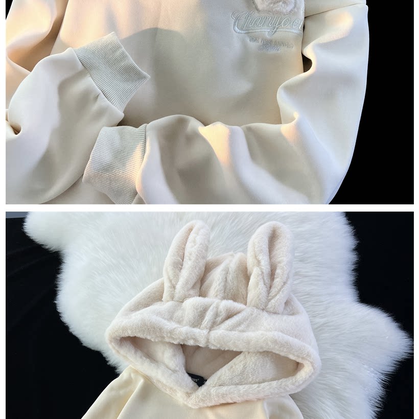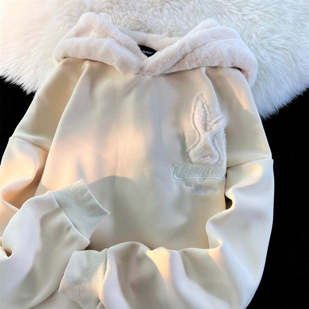 Японский милый кролик, демисезонная толстовка с капюшоном, утепленная куртка, свободный крой