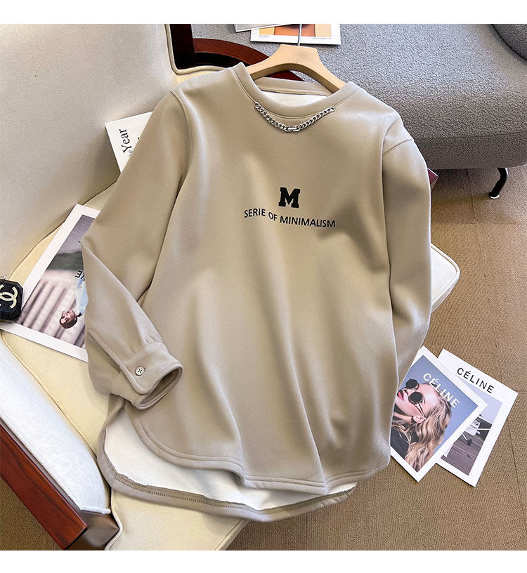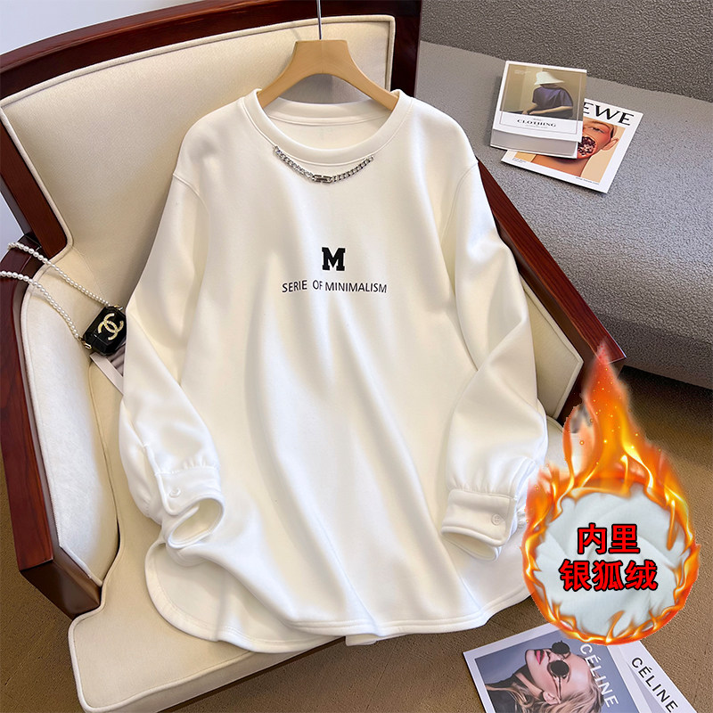 Флисовая цепь, демисезонная толстовка, лонгслив с круглым воротником, длина миди, увеличенная толщина