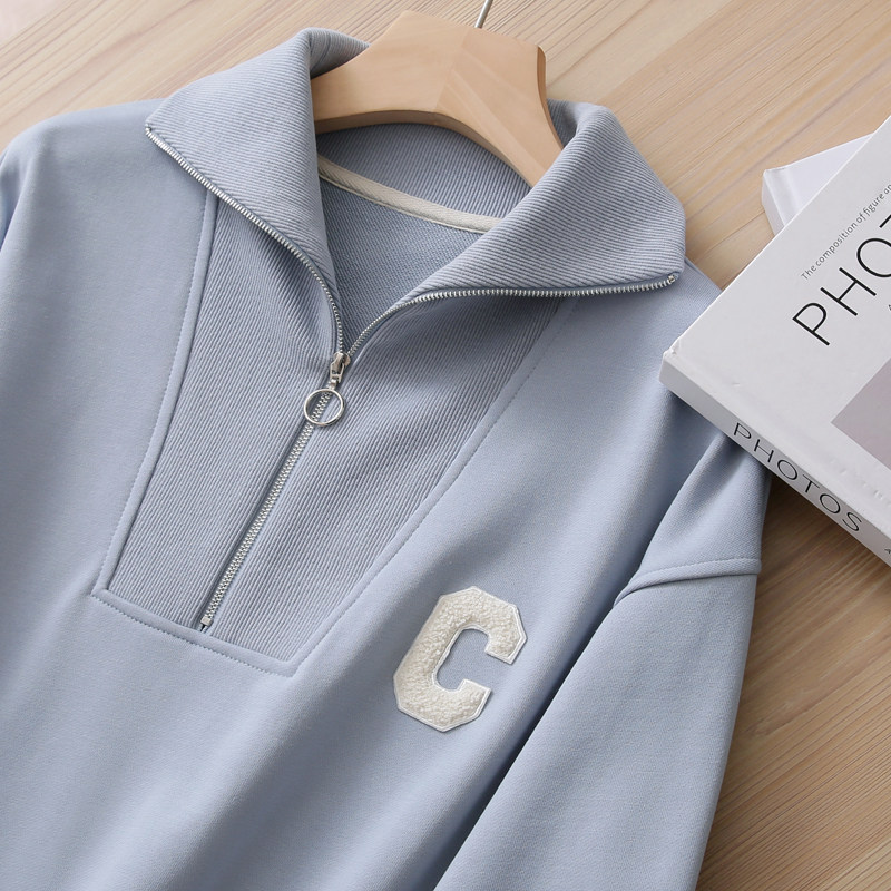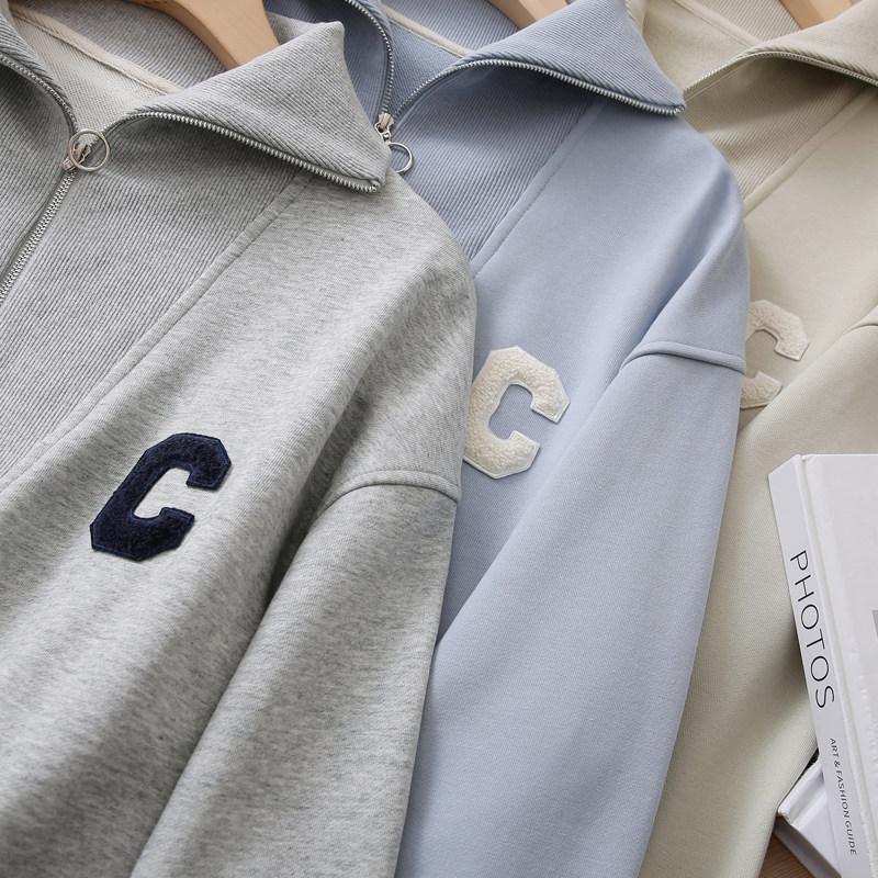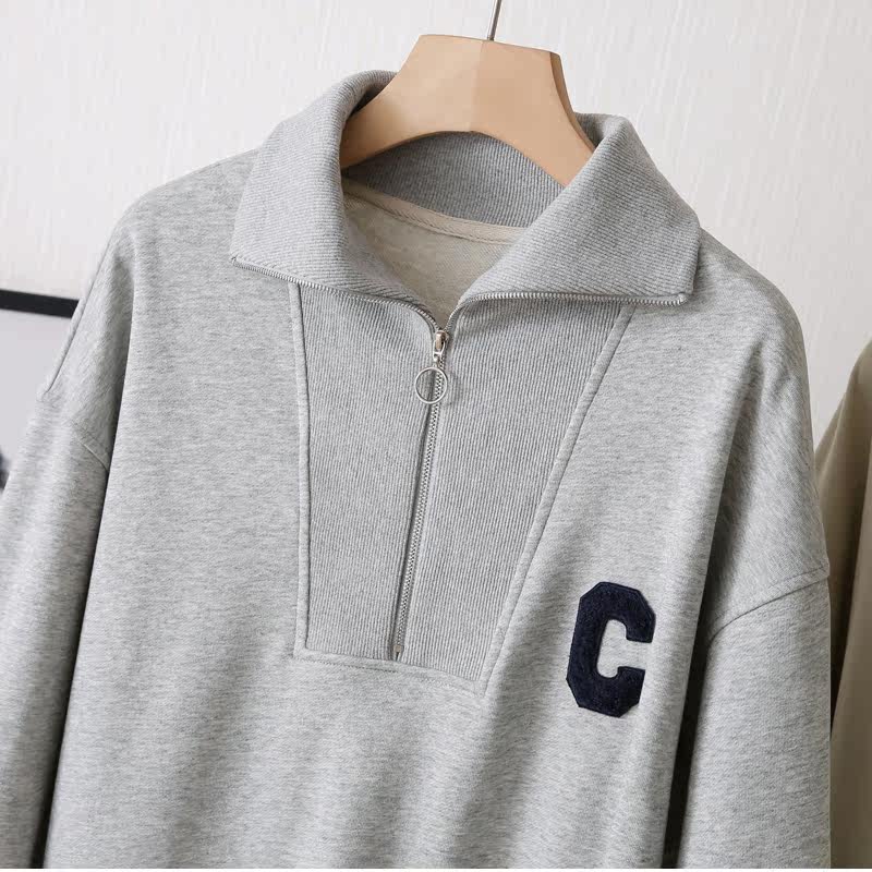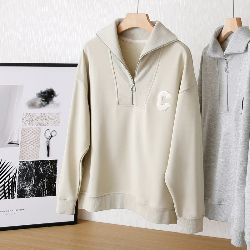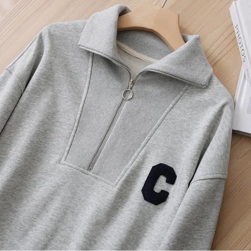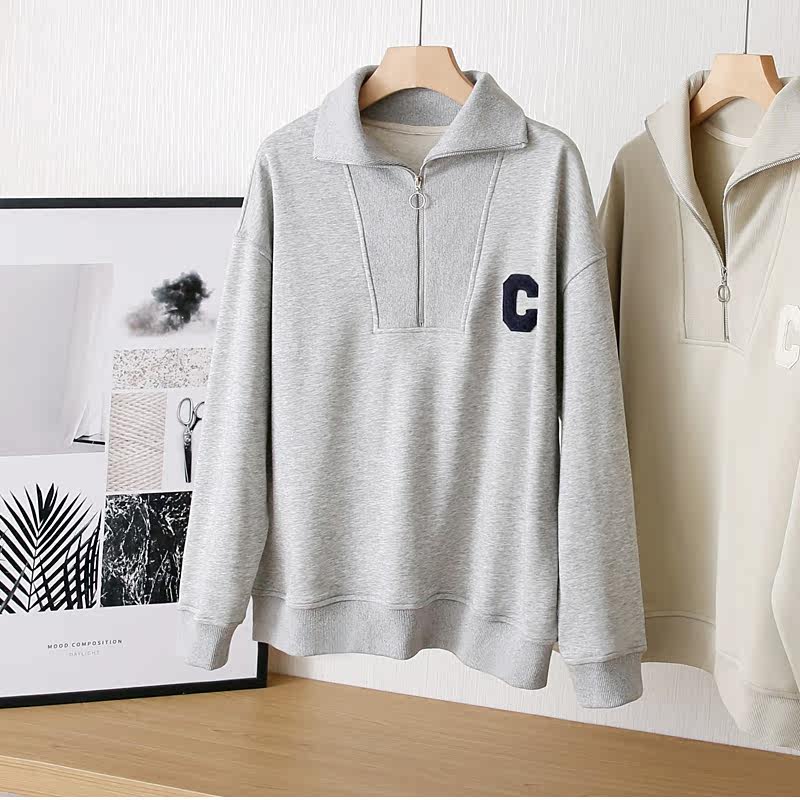 Демисезонный свитшот с молнией, лонгслив для отдыха, на молнии, оверсайз