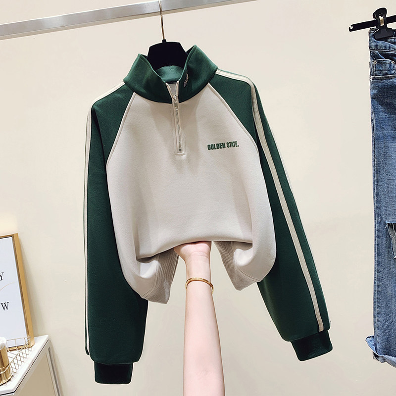 Демисезонная ретро зеленая толстовка с молнией, спортивная куртка, оверсайз, в американском стиле, воротник поло, на молнии