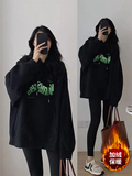 Черная куртка, утепленная толстовка с капюшоном, 2024 года, большой размер, свободный крой