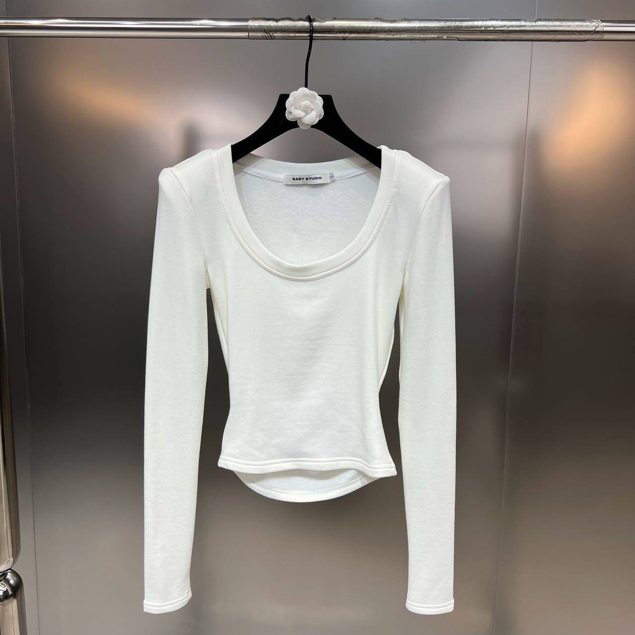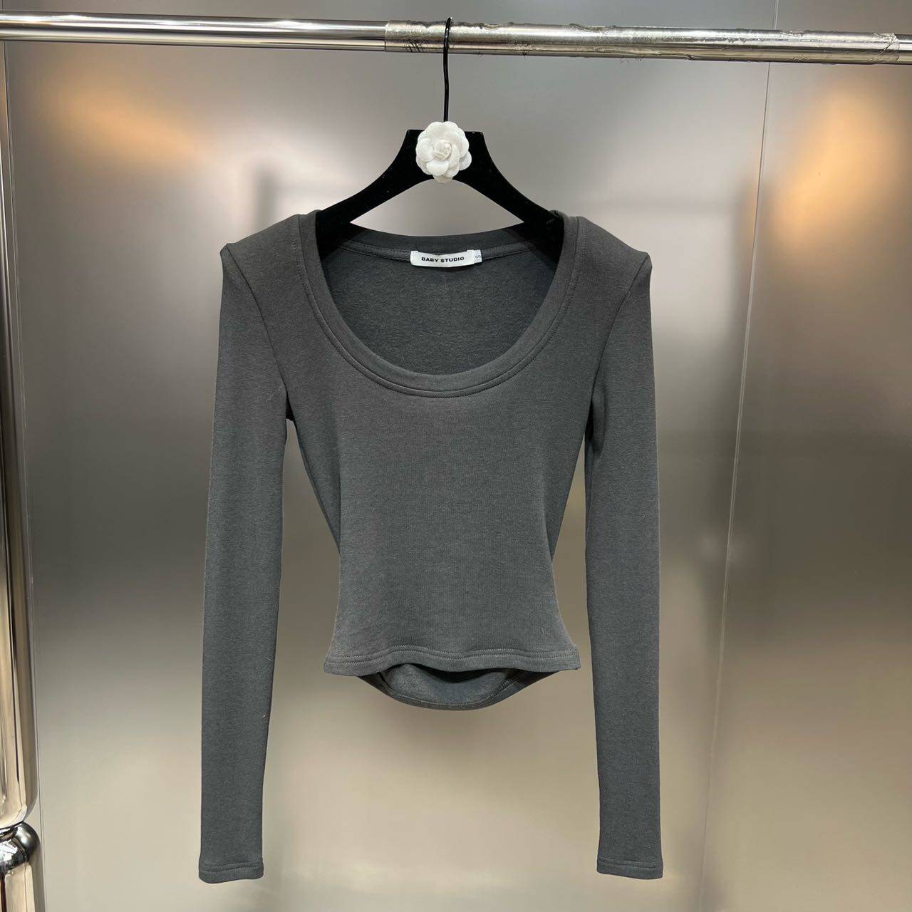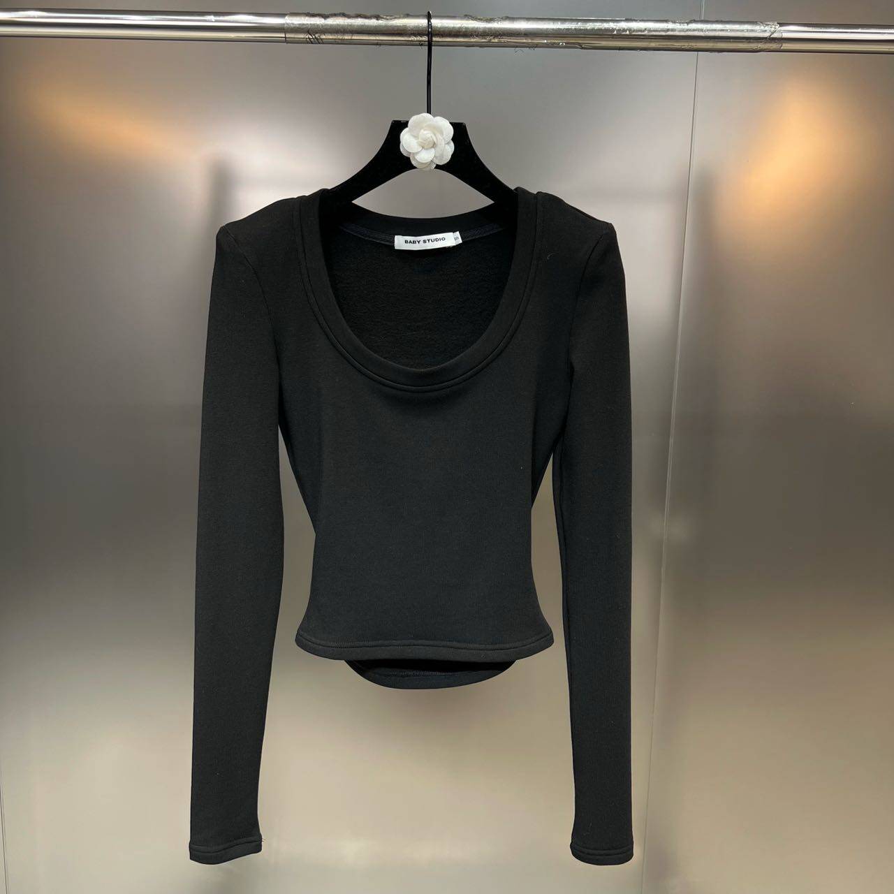 Бархатный эластичный брендовый лонгслив с круглым воротником, 2022 года