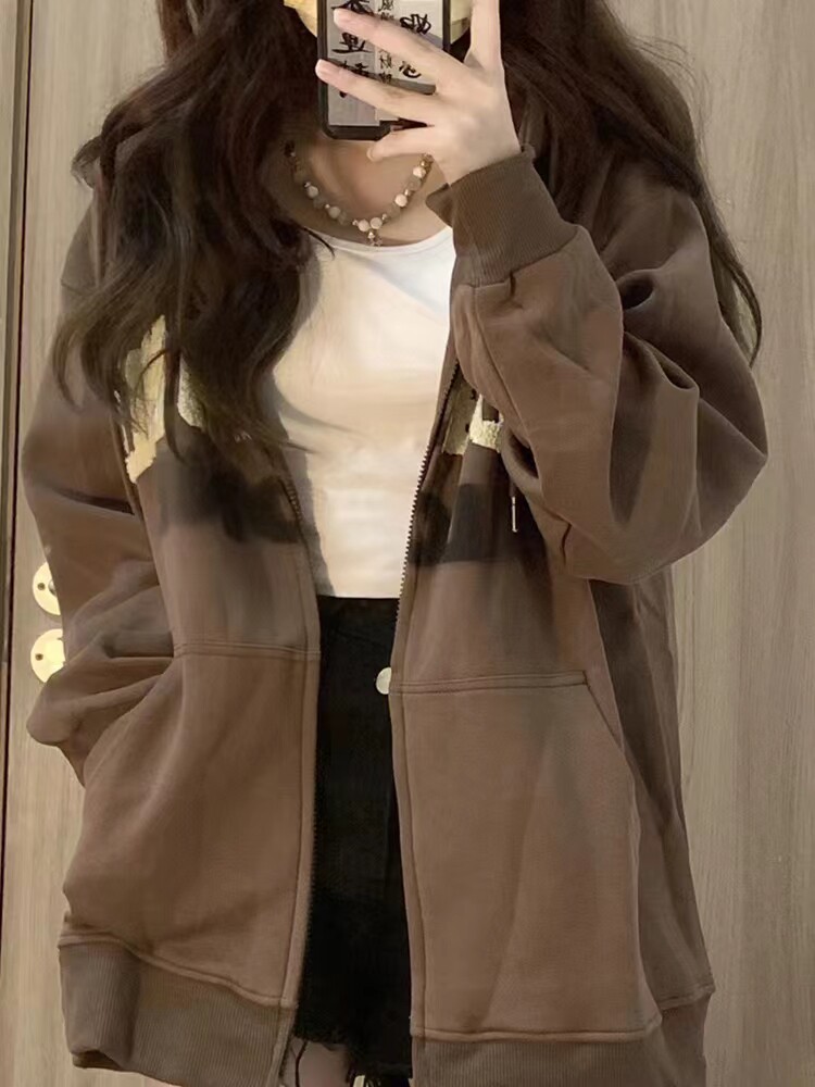 Коричневая ретро толстовка с капюшоном с капюшоном, утепленная толстовка, цветная куртка, европейский стиль, большой размер