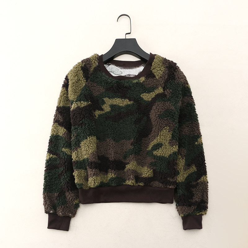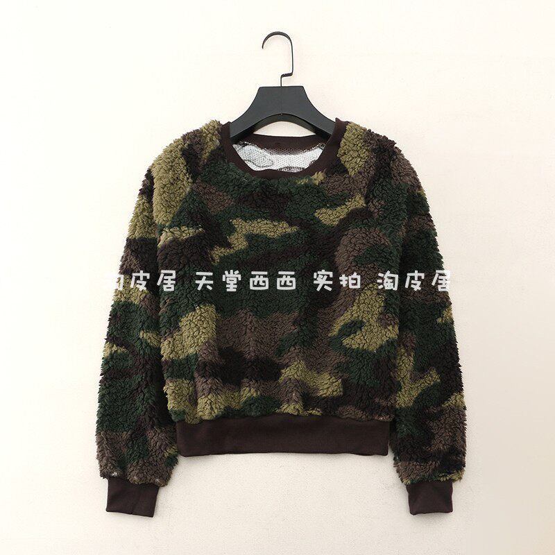 Камуфляжная короткая бархатная толстовка для отдыха с круглым воротником, США
