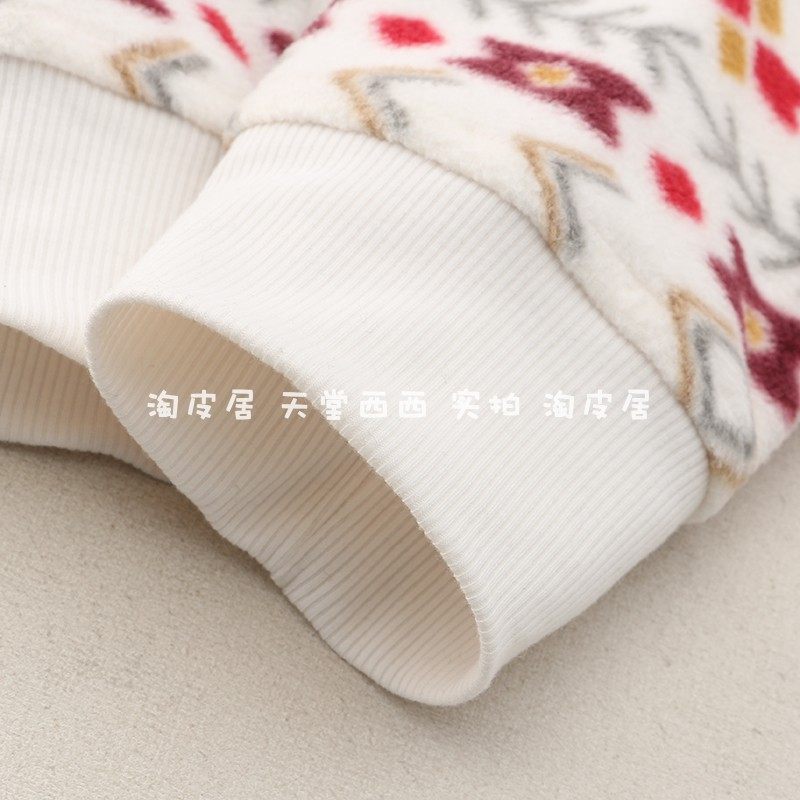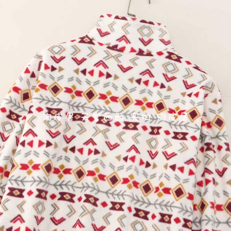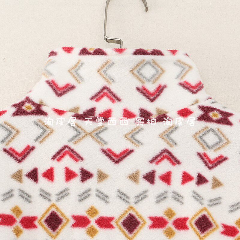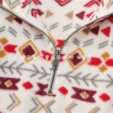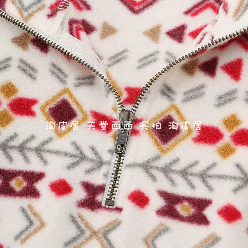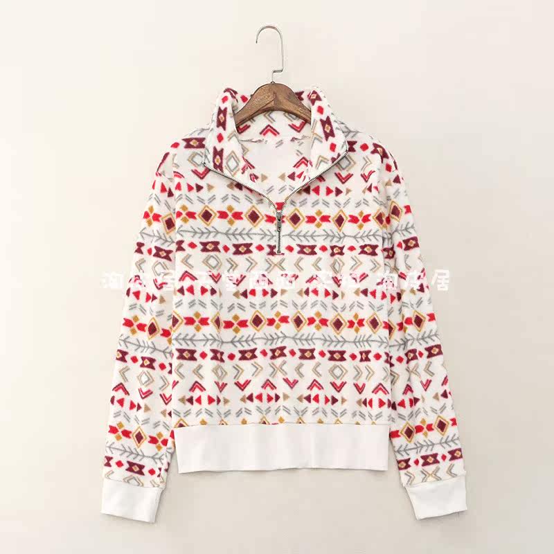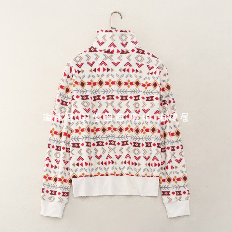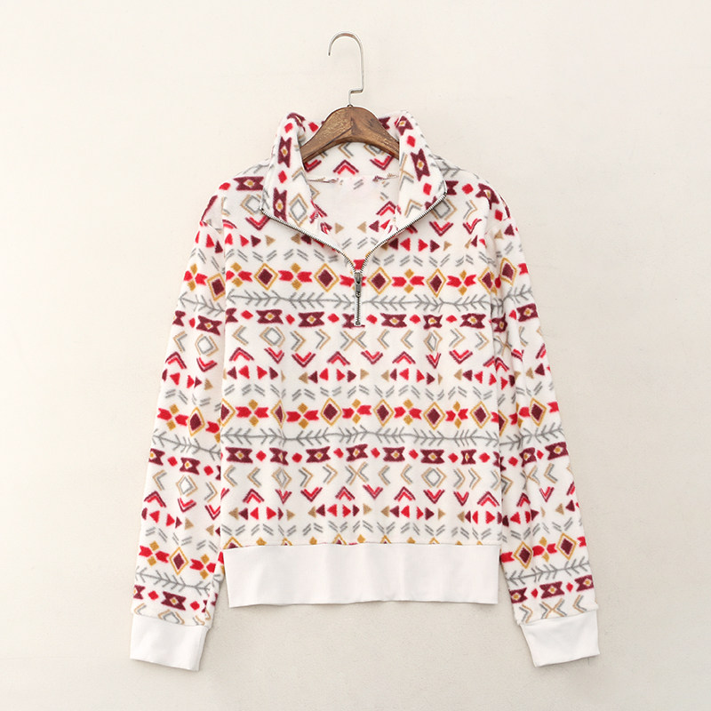 23815 Канадский сингл ~ Контрастной геометрический отпечаток на свободной стенде -Обратный воротник Полу -Зиппер Шадл Вельхатный свитер 0,35