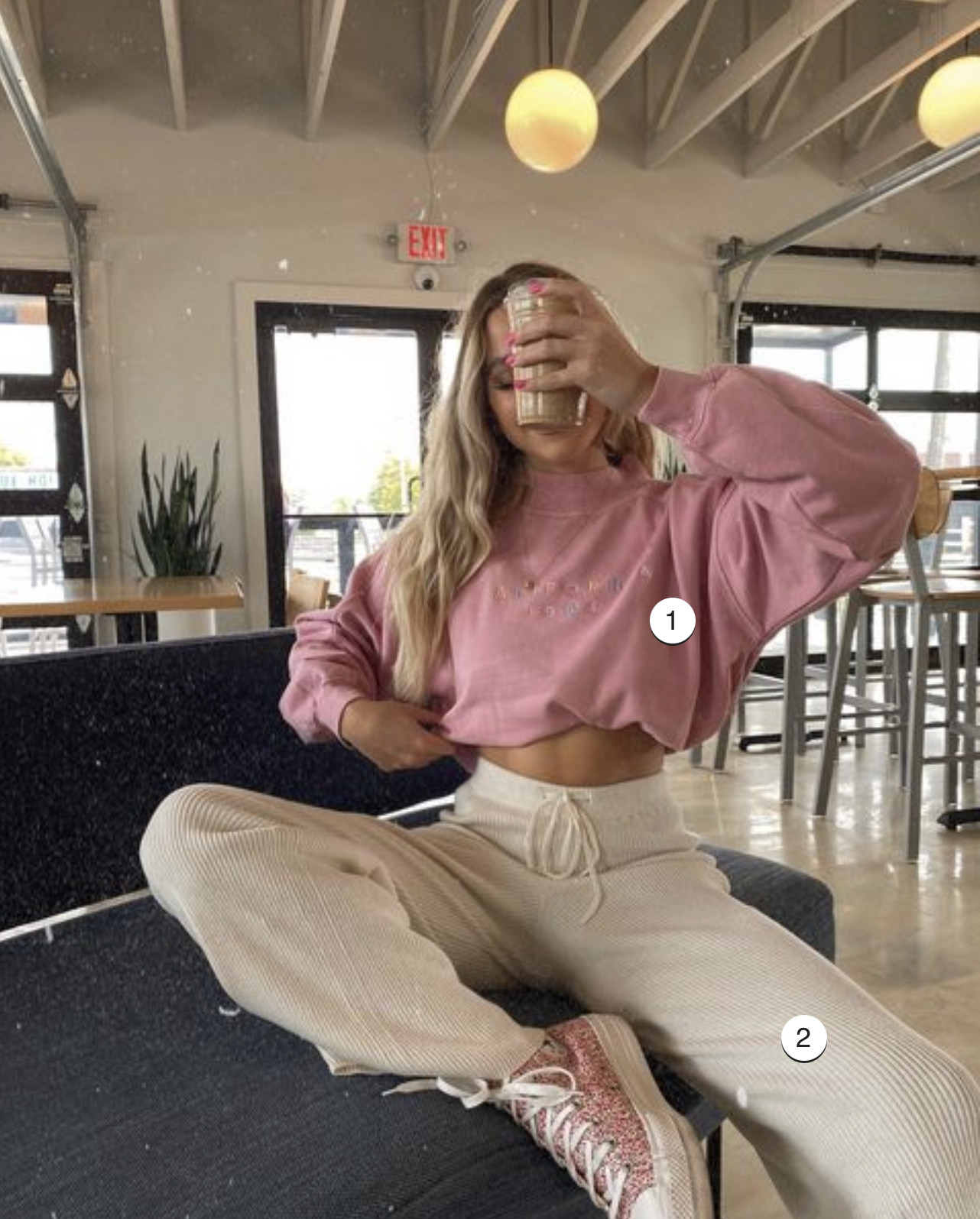 Его свитшоты можно сочетать со стильными брюками-клеш из магазина.