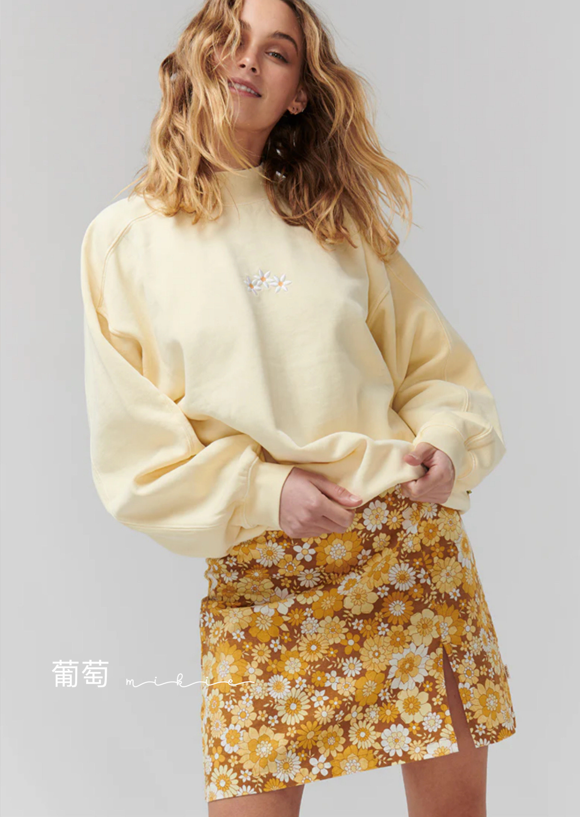 Свободный пуловер с вышивкой Grape miki Canadian gha*a в стиле ретро с высоким воротником и вышивкой