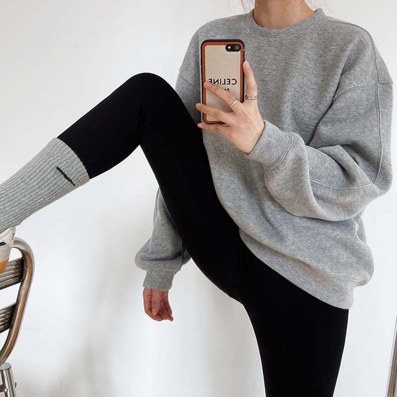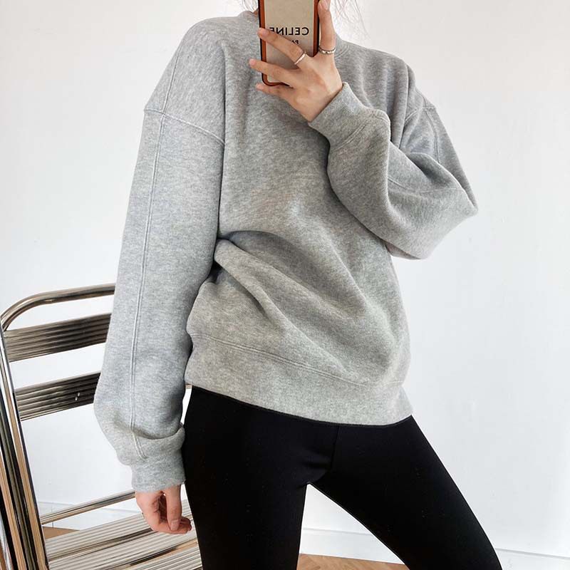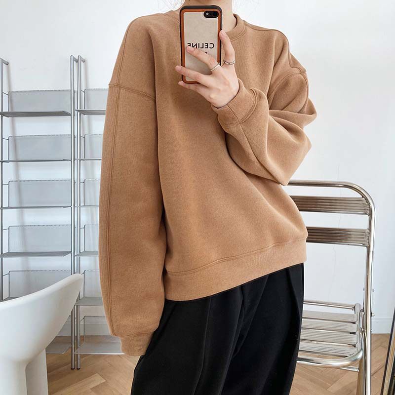 Корейский утепленный свитшот с круглым воротником, в корейском стиле, оверсайз, подходит для подростков