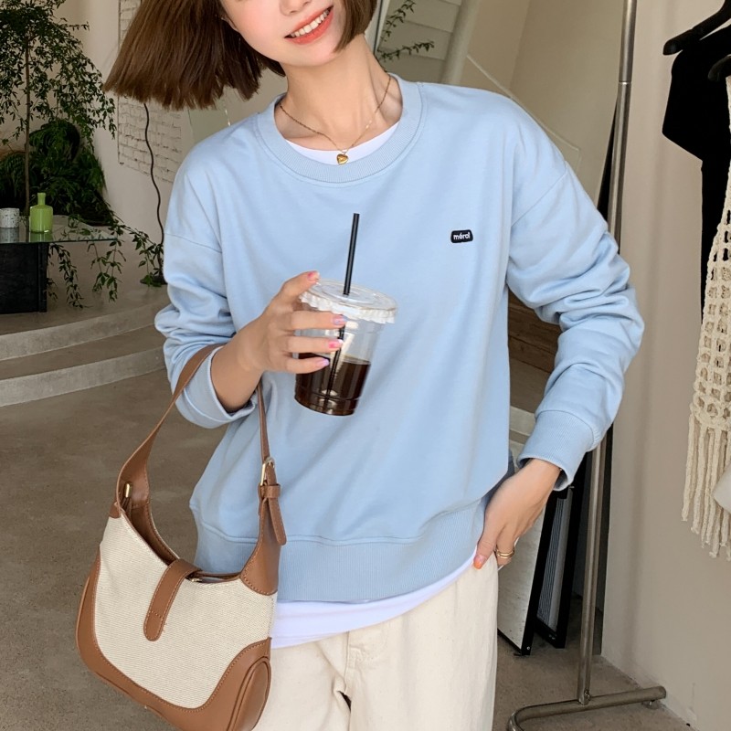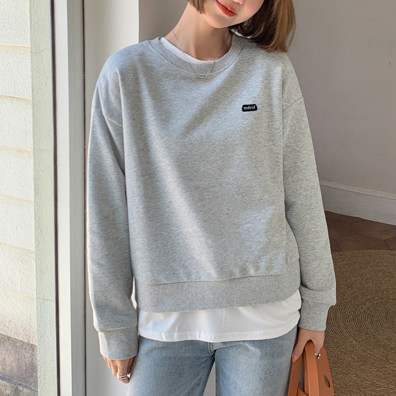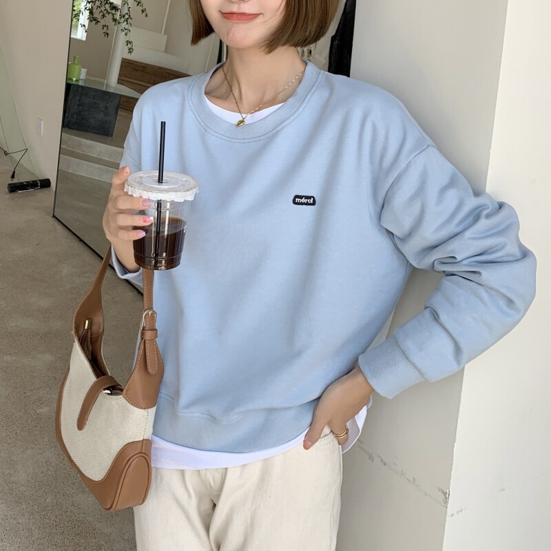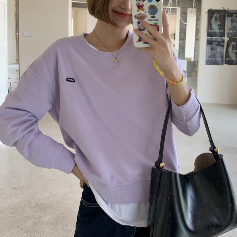 Короткая сиреневая осенняя брендовая толстовка с круглым воротником, оверсайз, в корейском стиле, подходит для подростков