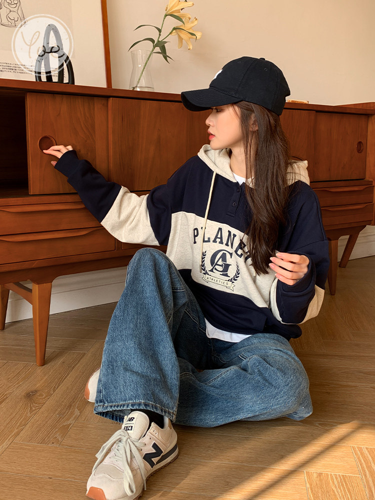 Балахон, ретро толстовка, весенний комплект, в американском стиле, 2023, оверсайз