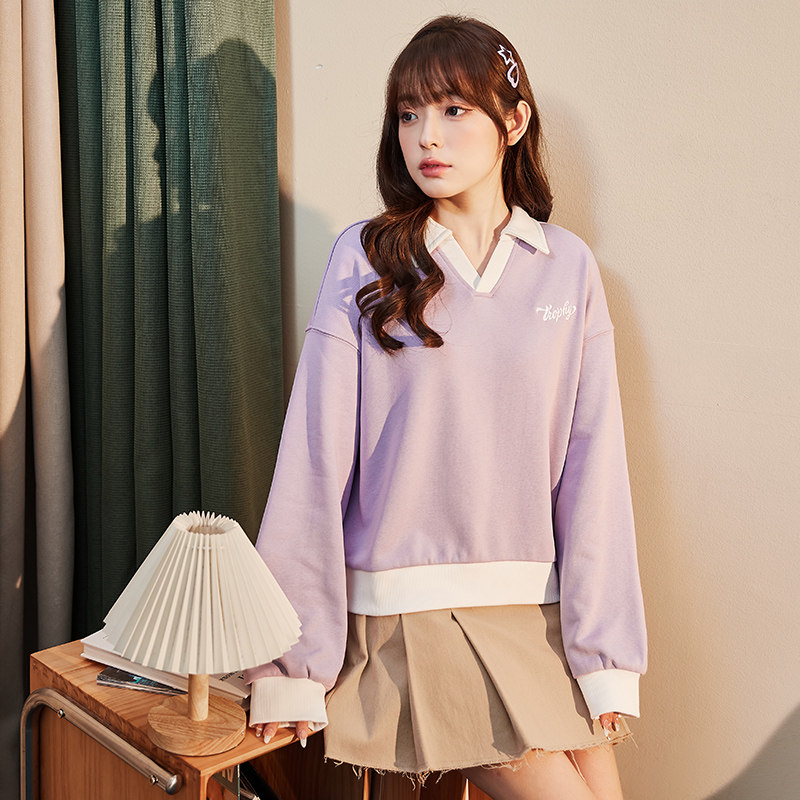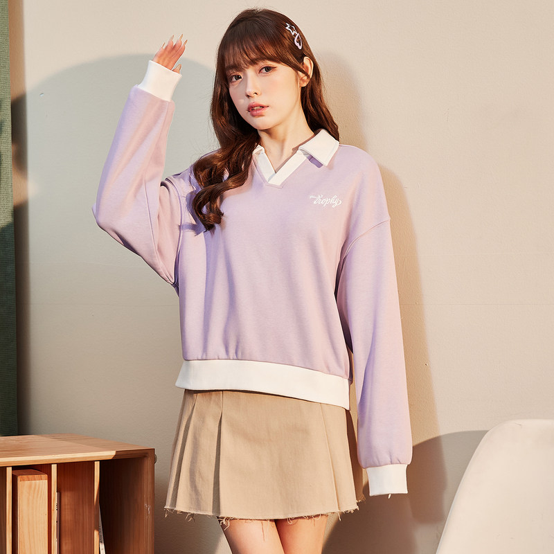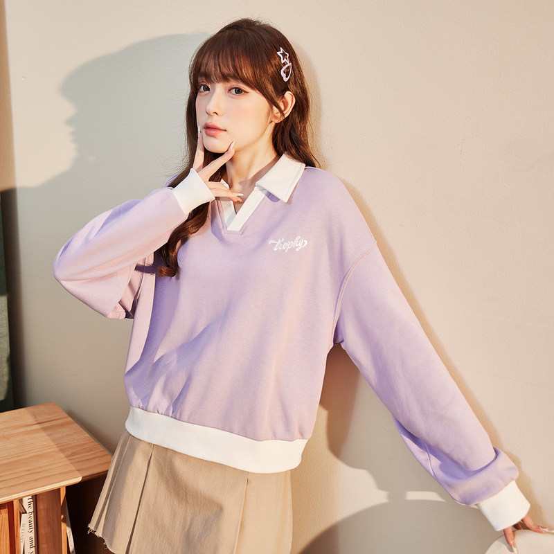 Весенняя толстовка, милый дизайнерский короткий лонгслив, 2023, тренд сезона, воротник поло, в западном стиле