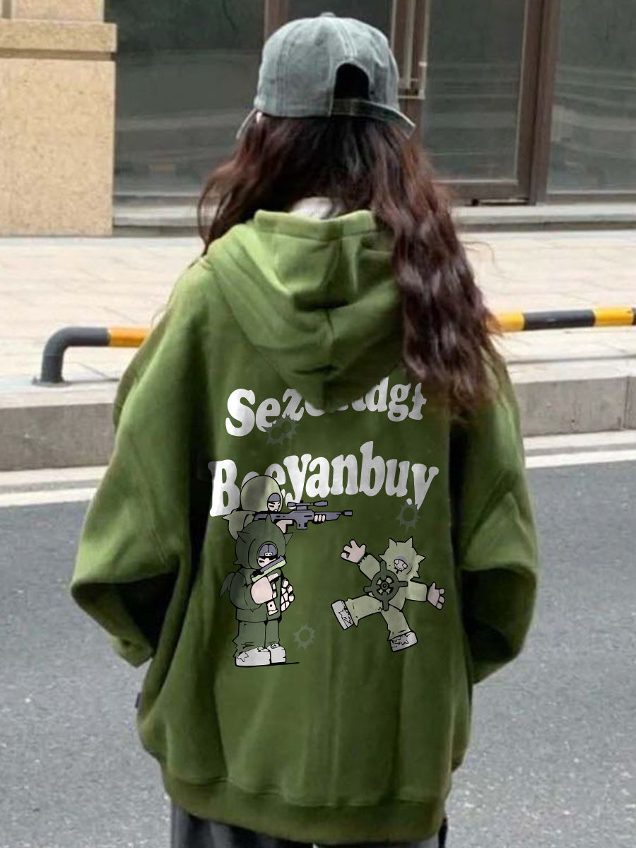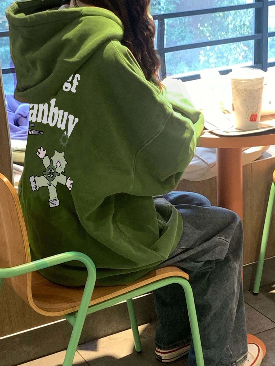 Ретро зеленая демисезонная утепленная толстовка с капюшоном, в американском стиле, оверсайз, коллекция 2023