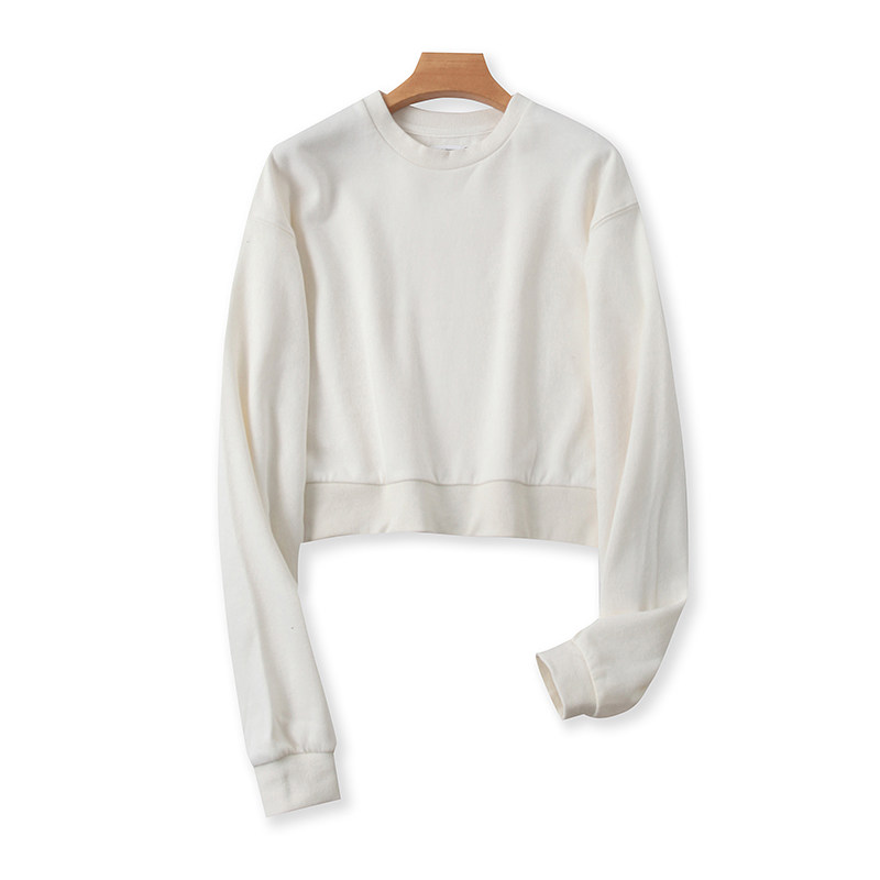 Бархатная короткая осенняя толстовка с круглым воротником, лонгслив, базовая футболка