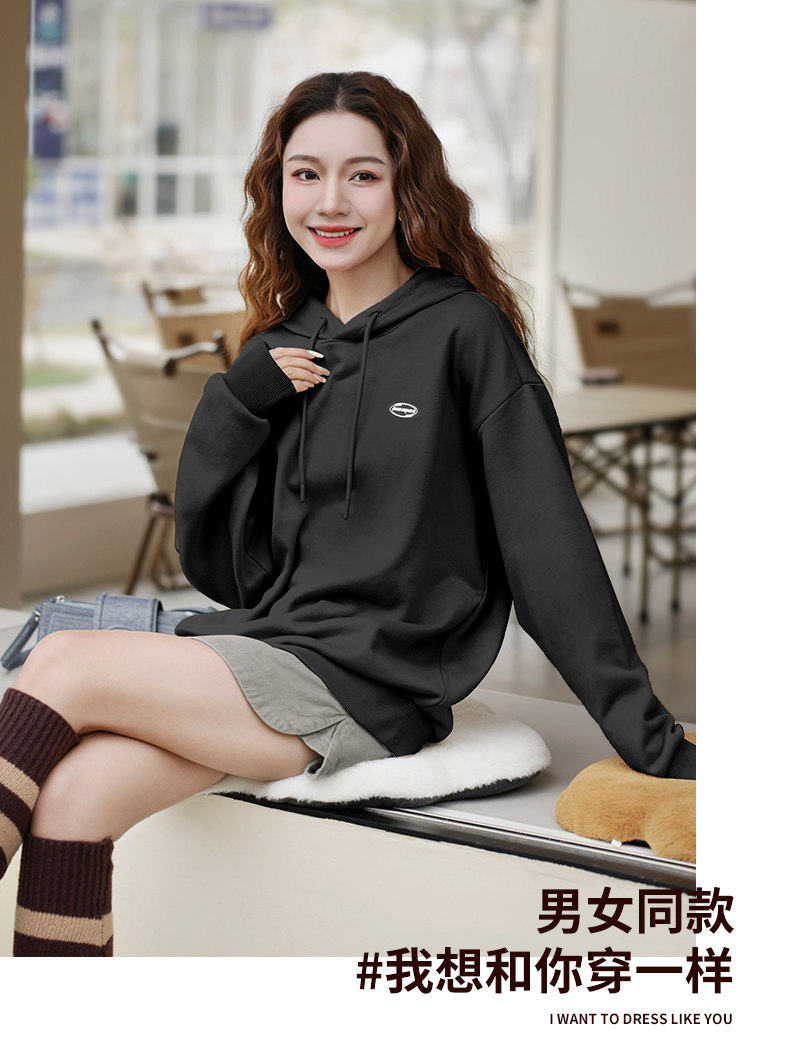Осенняя толстовка, лонгслив с капюшоном, куртка, комплект, коллекция 2023, оверсайз, изысканный стиль, для влюбленных