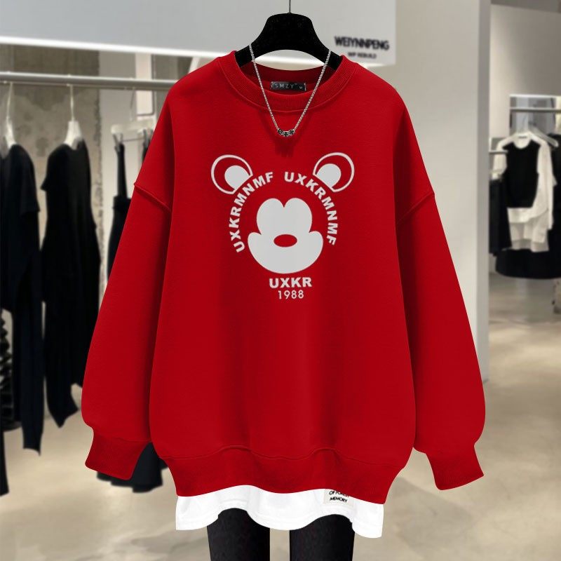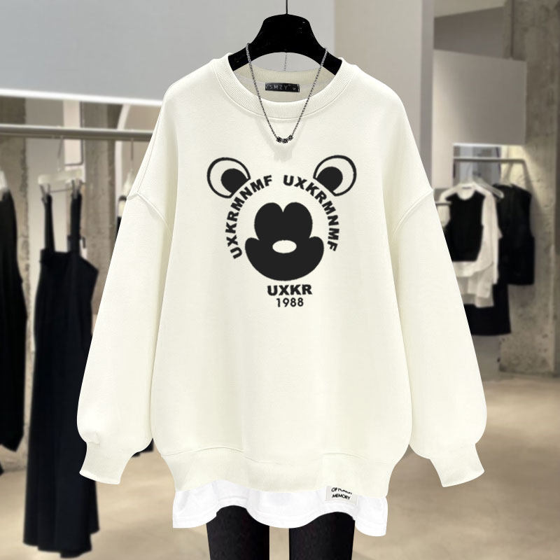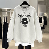 Осенний свитшот с буквами, утепленный длинный комплект, 2023, средней длины