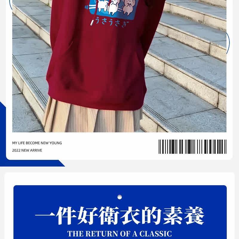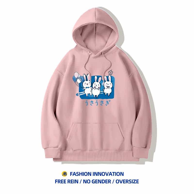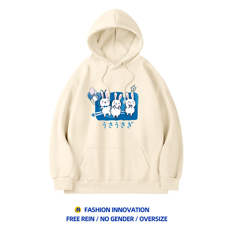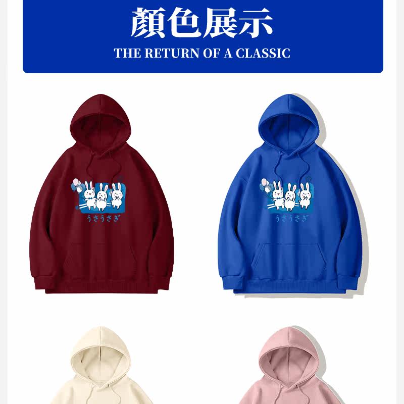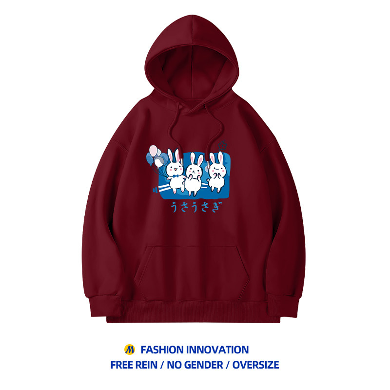 Бордовый модный оберег на день рождения, милая японская флисовая демисезонная толстовка с капюшоном для школьников и студентов, год кролика