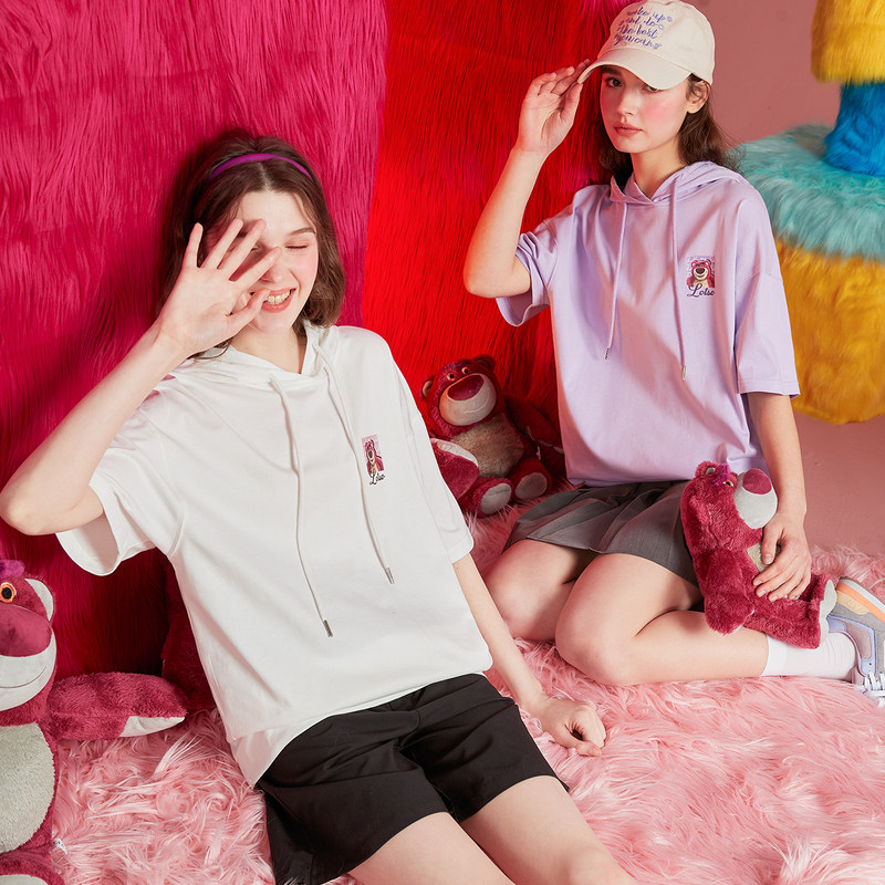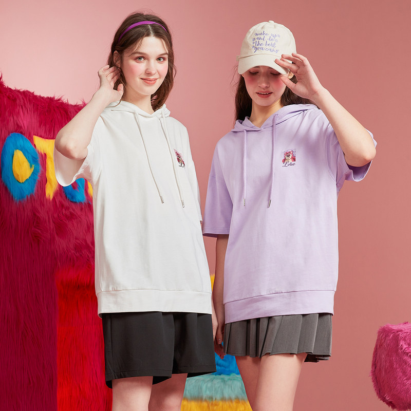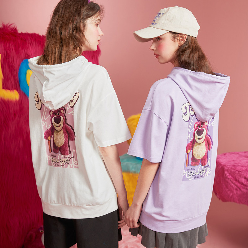Клубника, летняя толстовка, милая футболка с капюшоном, короткий рукав