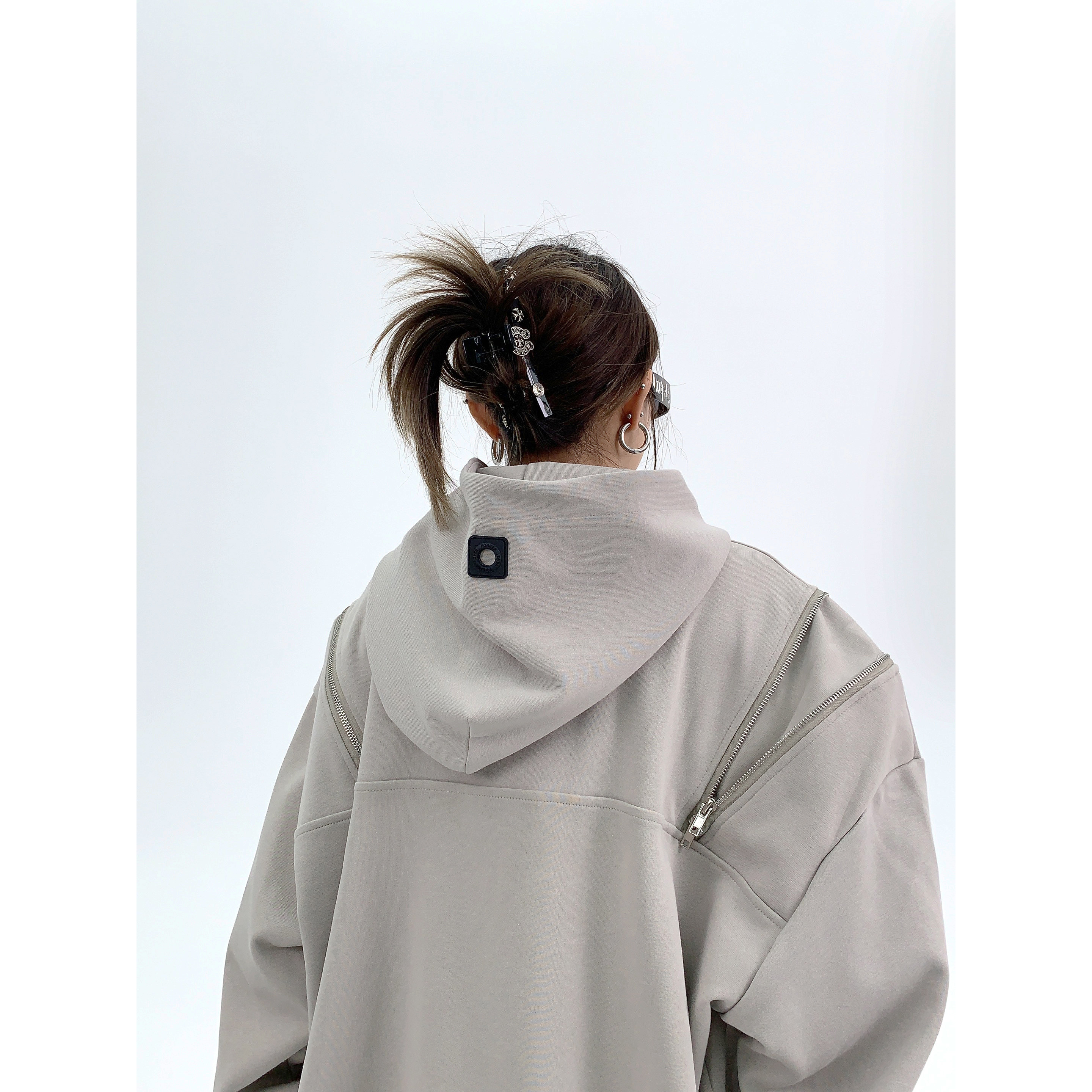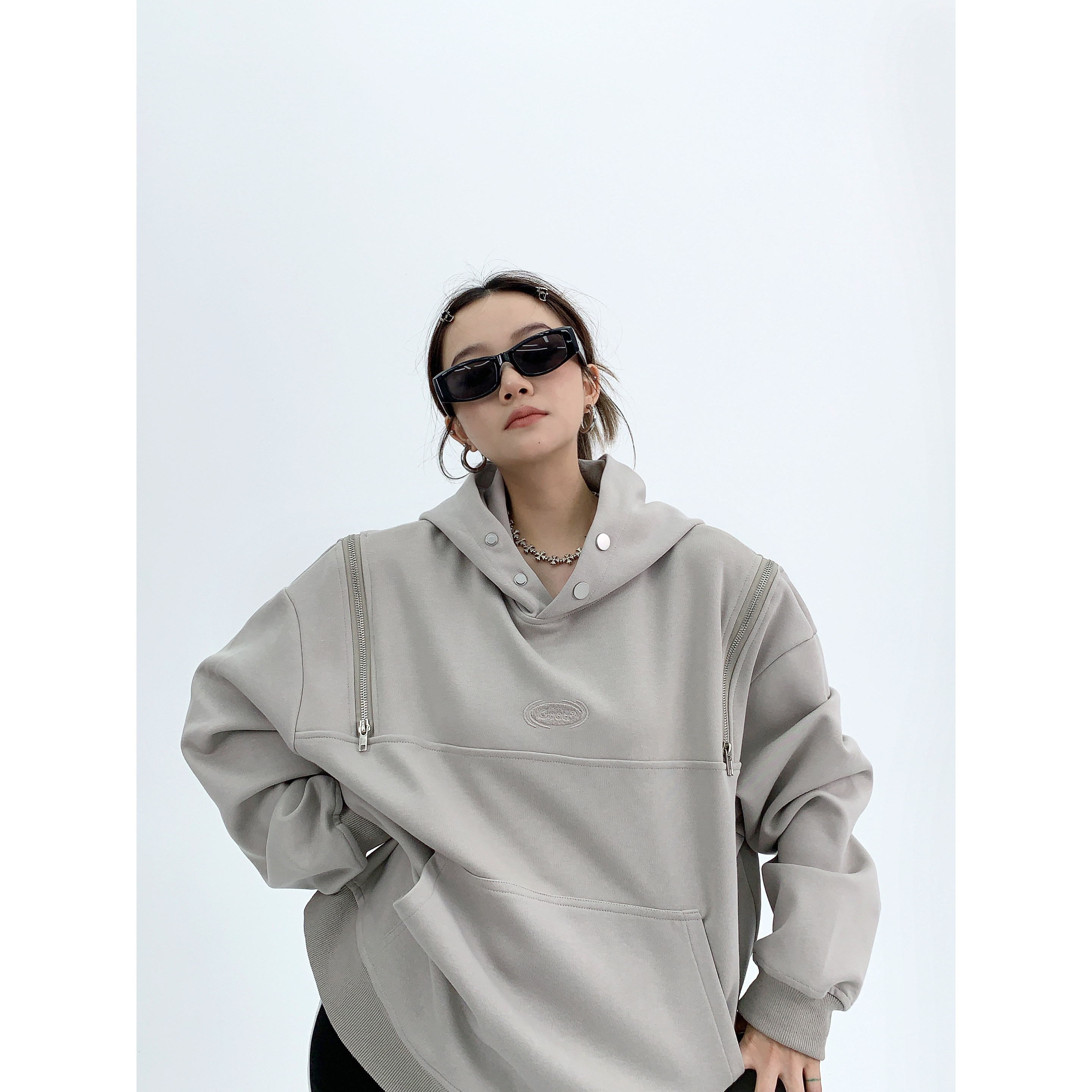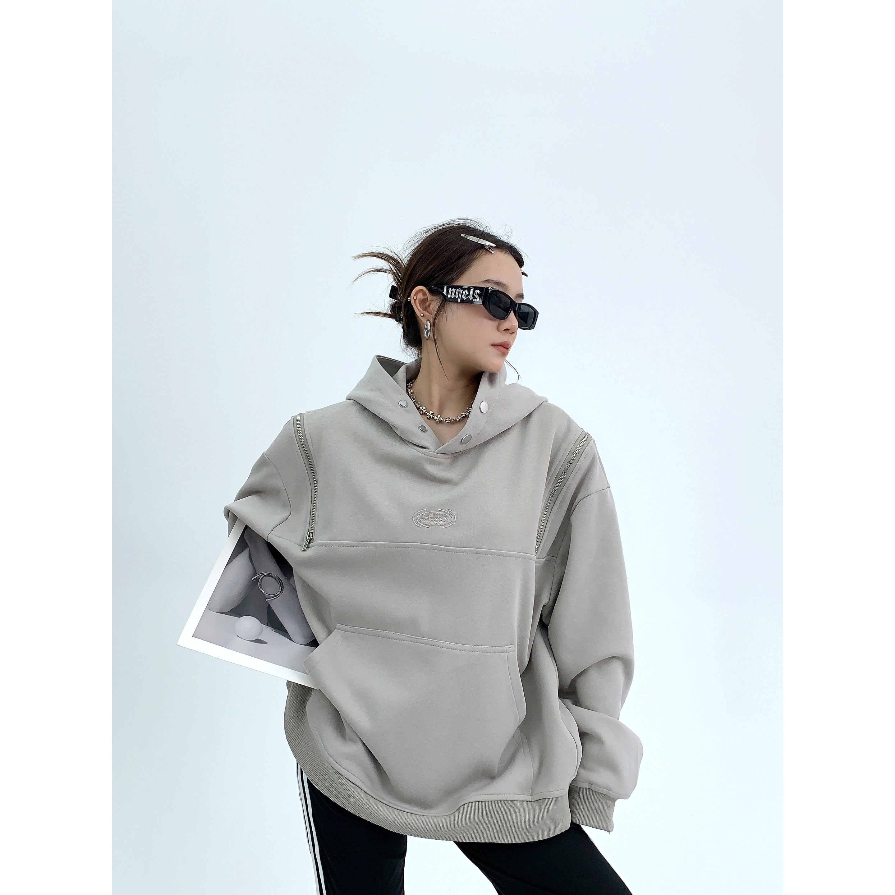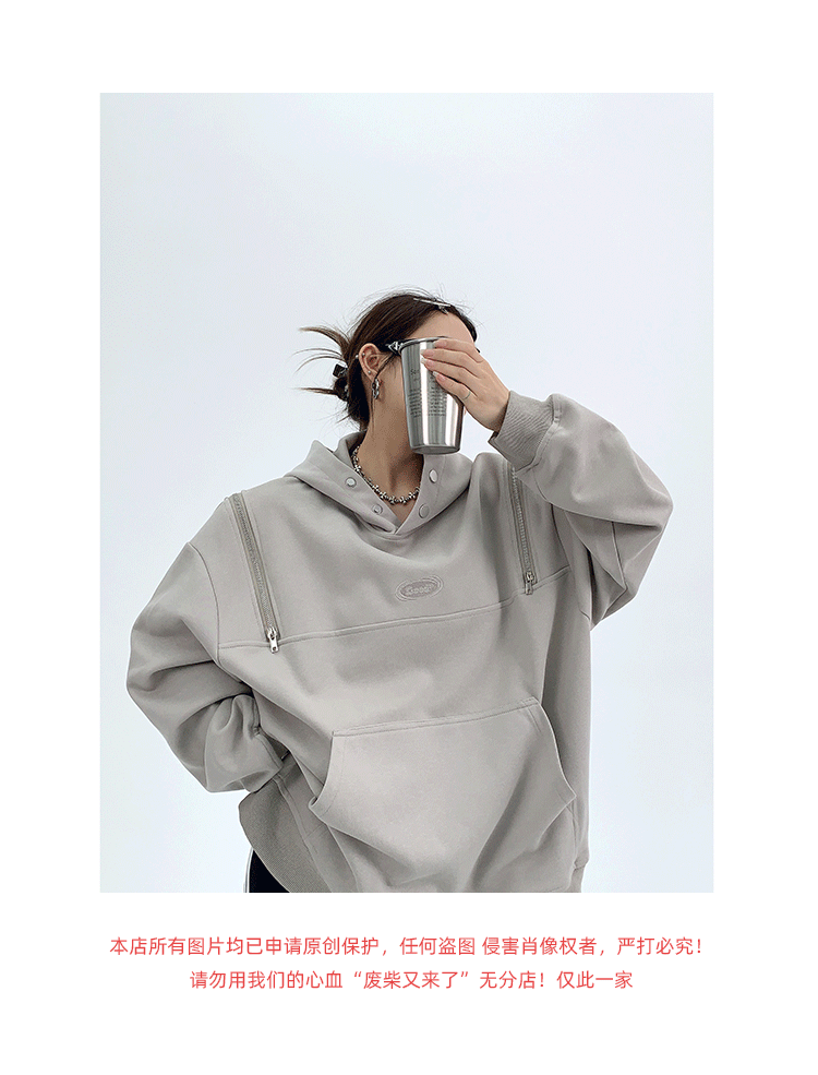 Демисезонная небольшая ретро дизайнерская толстовка с капюшоном с молнией, увеличенная толщина, оверсайз, тренд сезона