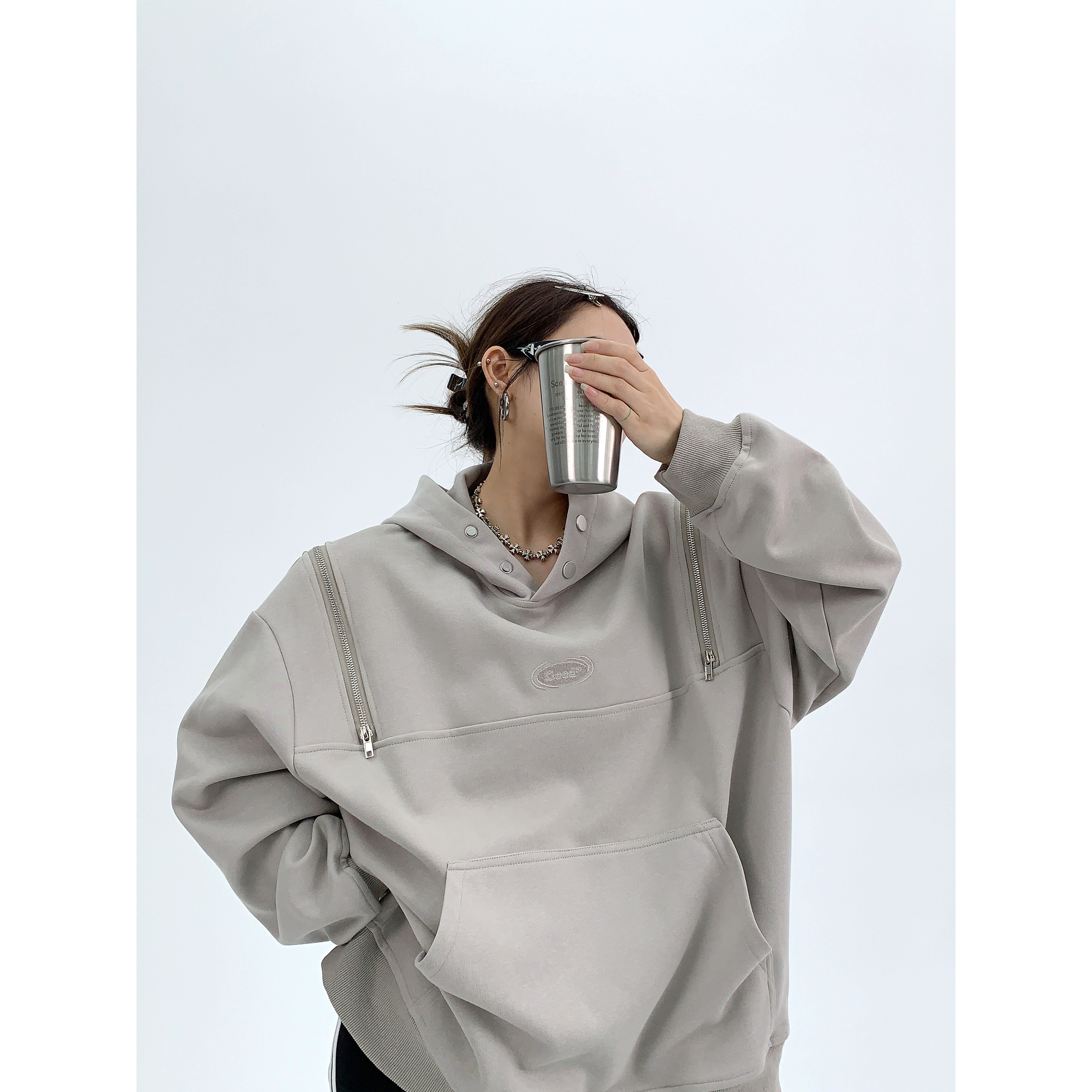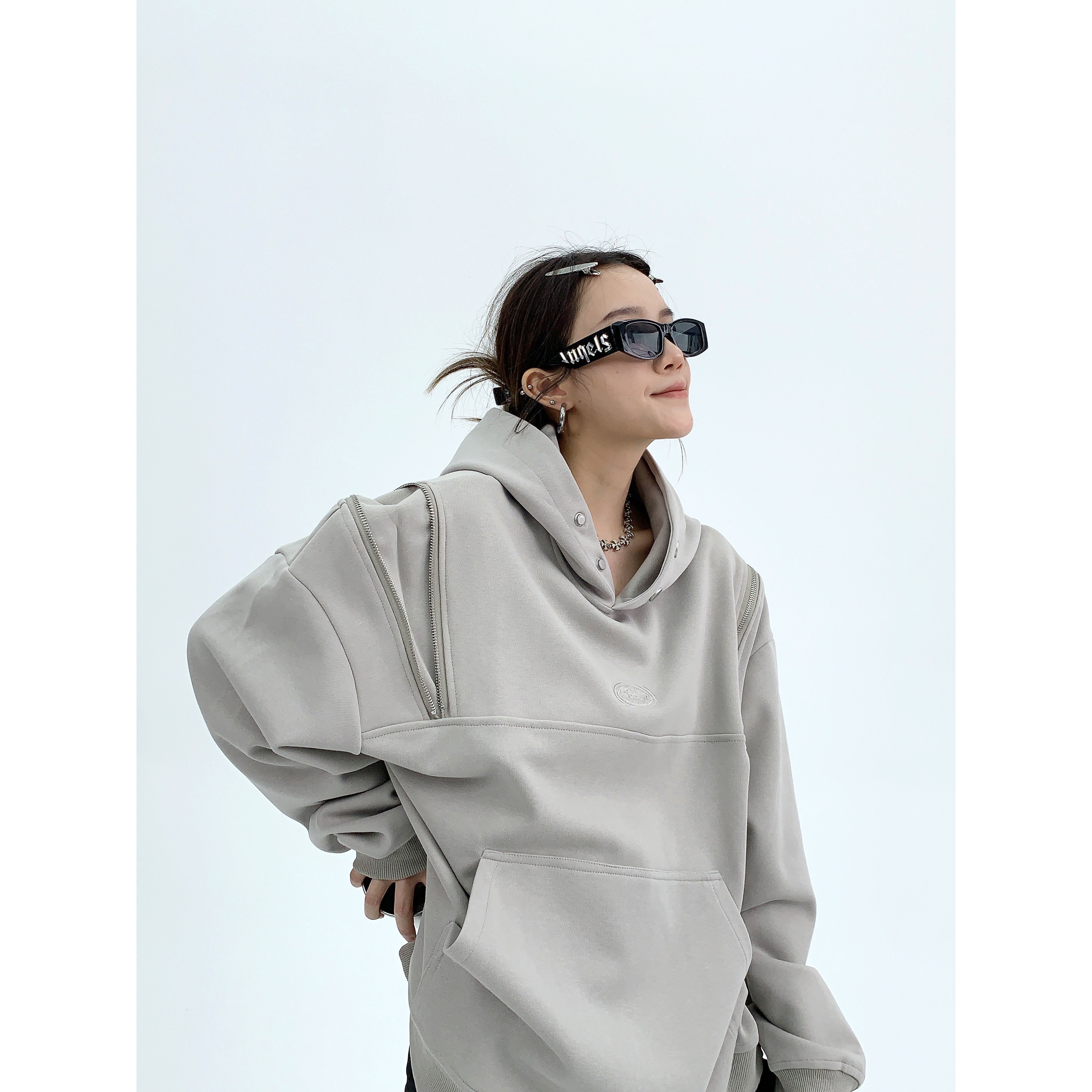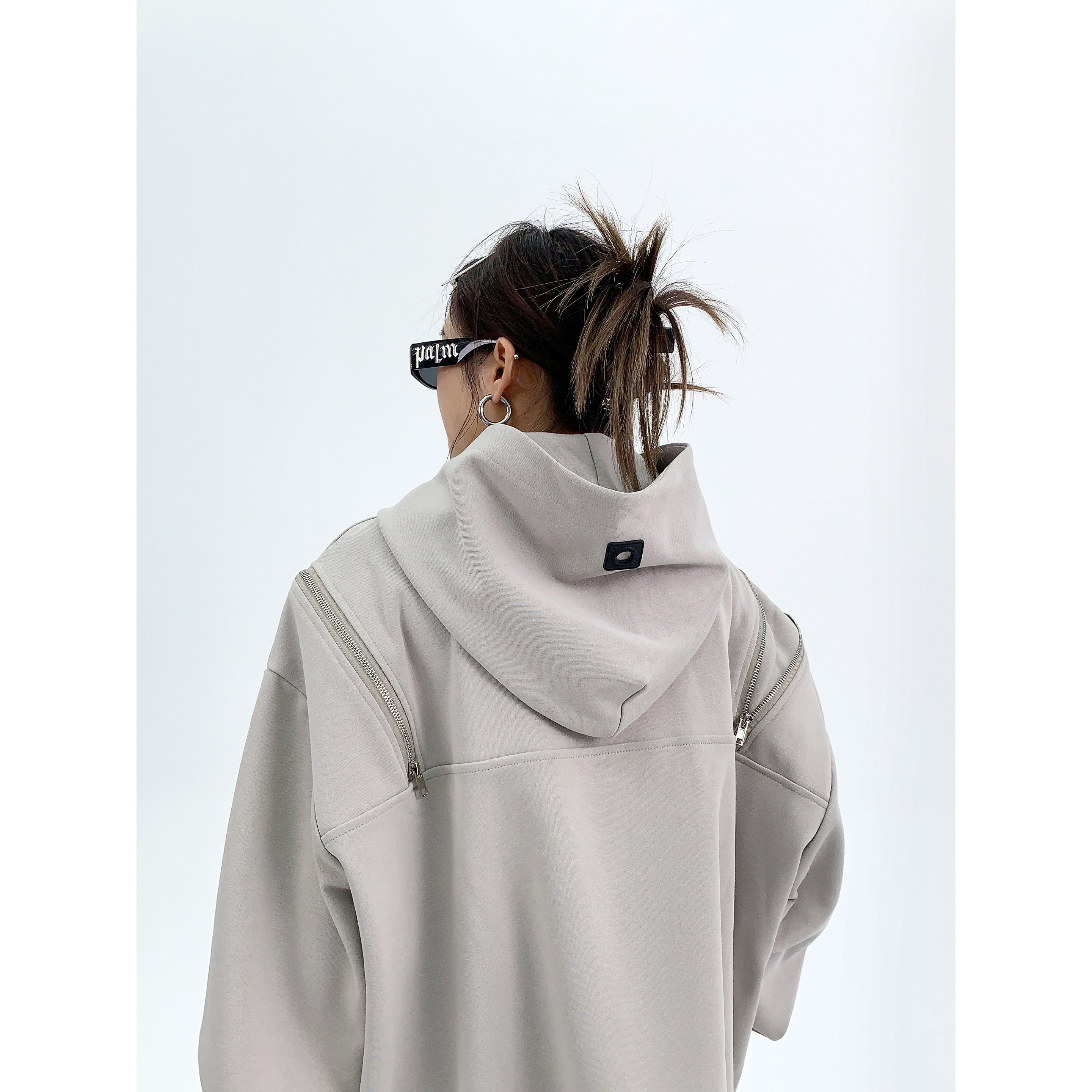 Демисезонная небольшая ретро дизайнерская толстовка с капюшоном с молнией, увеличенная толщина, оверсайз, тренд сезона
