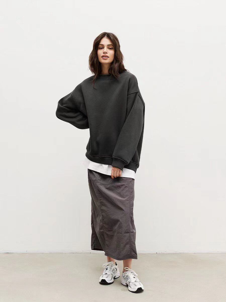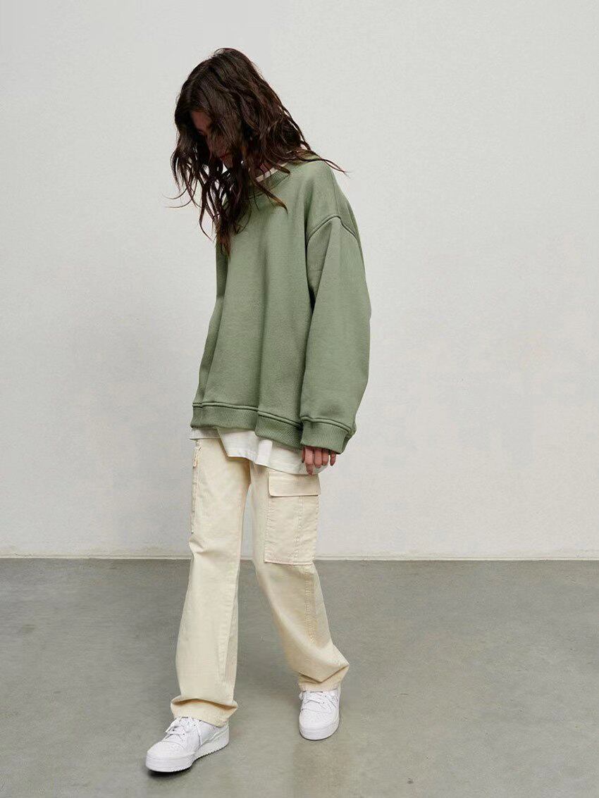 Европейский и американский новый уличный стиль сплошной цвет универсальный и свободный свитер кравина сплошной пуловер.