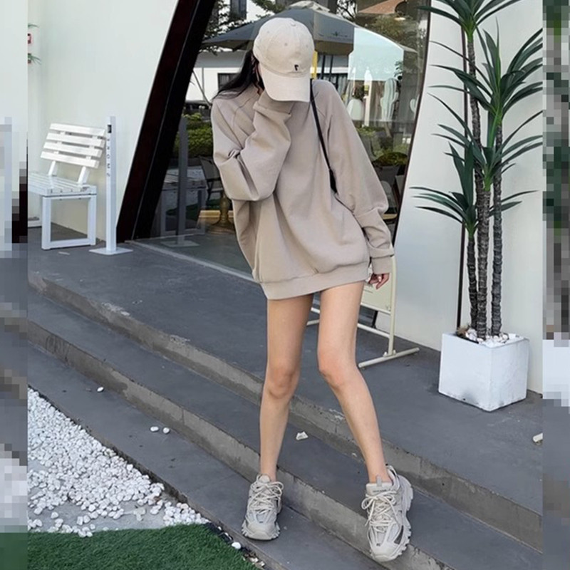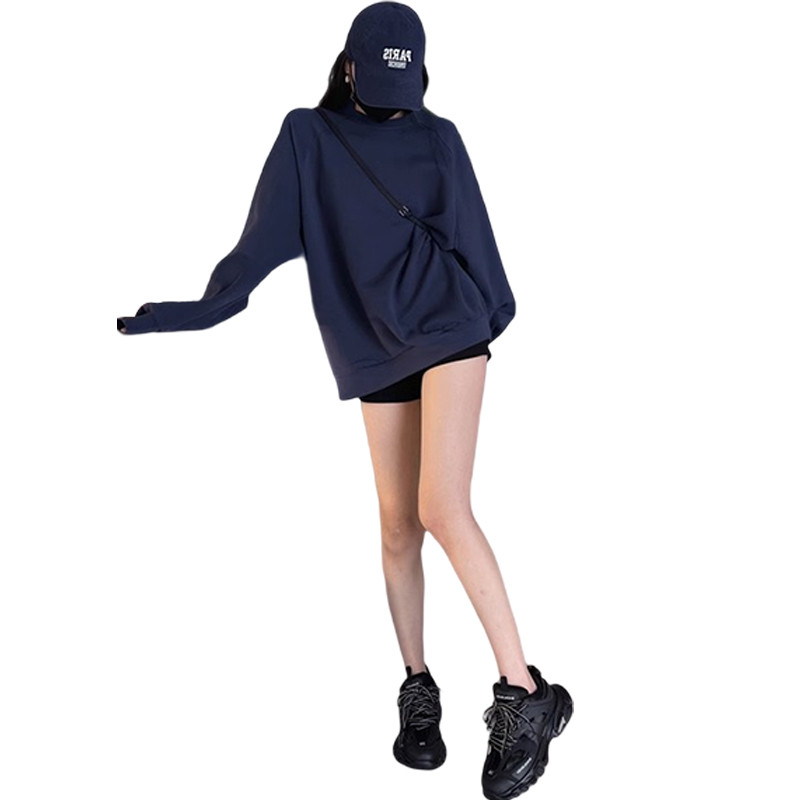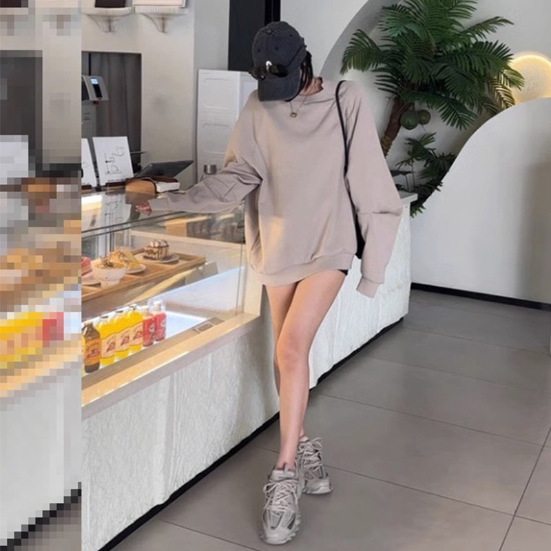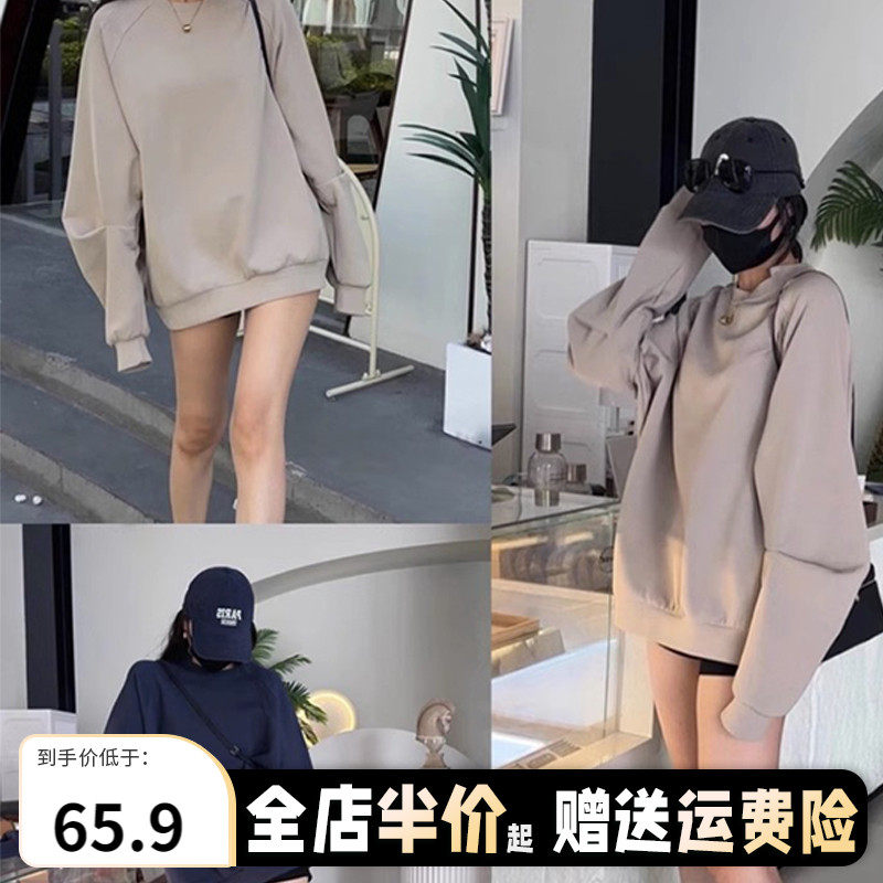 Осенний ретро тонкий лонгслив с круглым воротником, в американском стиле, свободный крой, оверсайз