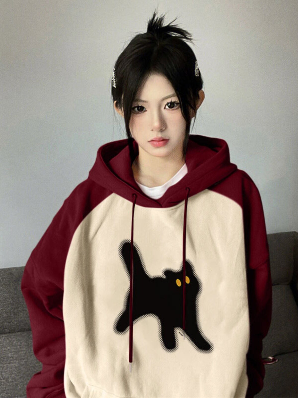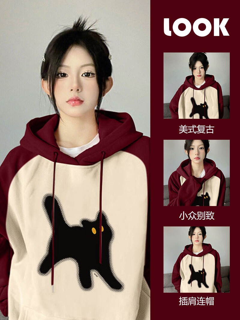 Бордовая осенняя ретро дизайнерская толстовка, в американском стиле, свободный крой, тренд сезона