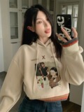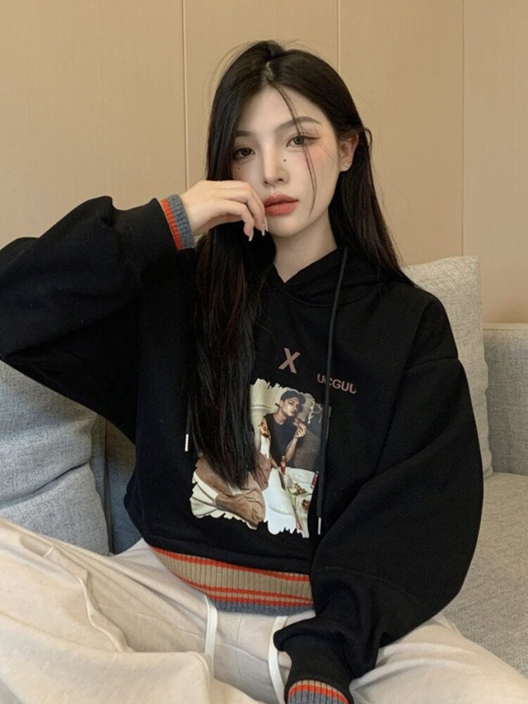 Красная короткая осенняя толстовка с капюшоном, ретро лонгслив, куртка, высокая талия, свободный крой, подходит для подростков, в американском стиле