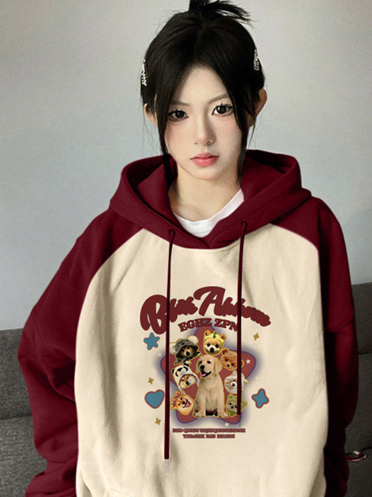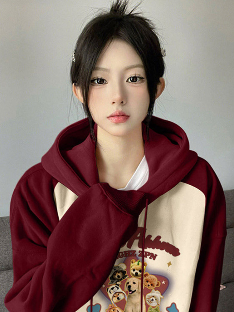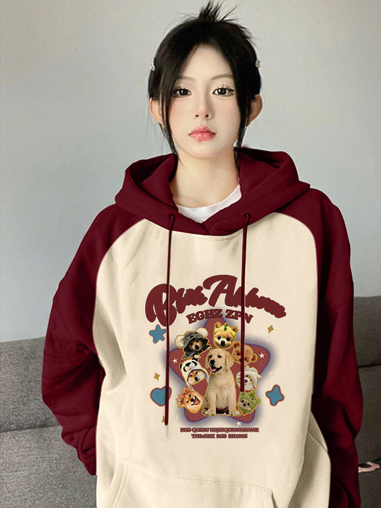 Ретро осенняя толстовка с капюшоном, лонгслив, в американском стиле, оверсайз