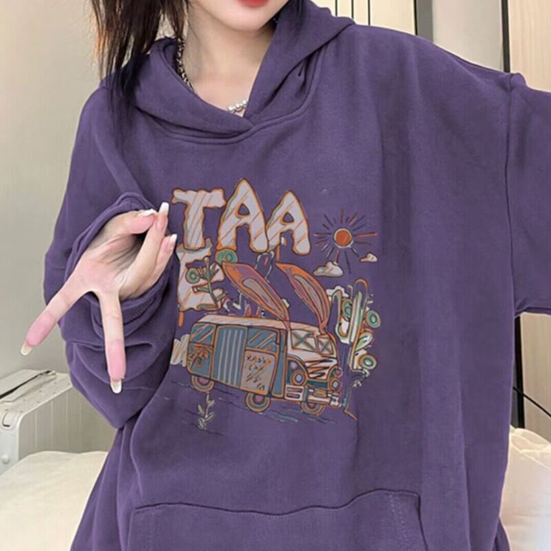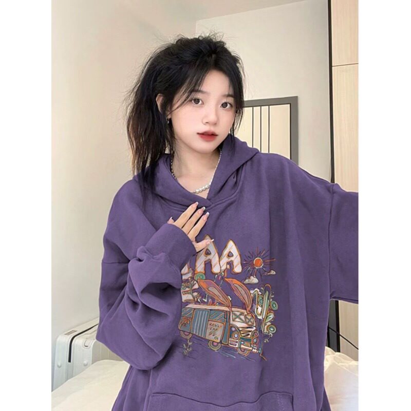 Сиреневая тонкая осенняя толстовка с капюшоном, куртка, оверсайз, в американском стиле, свободный крой, подходит для подростков