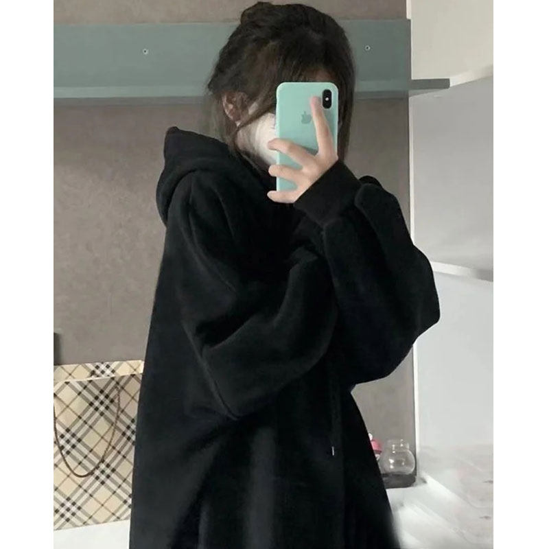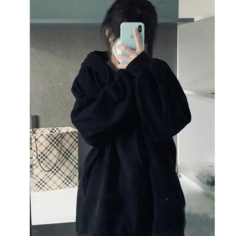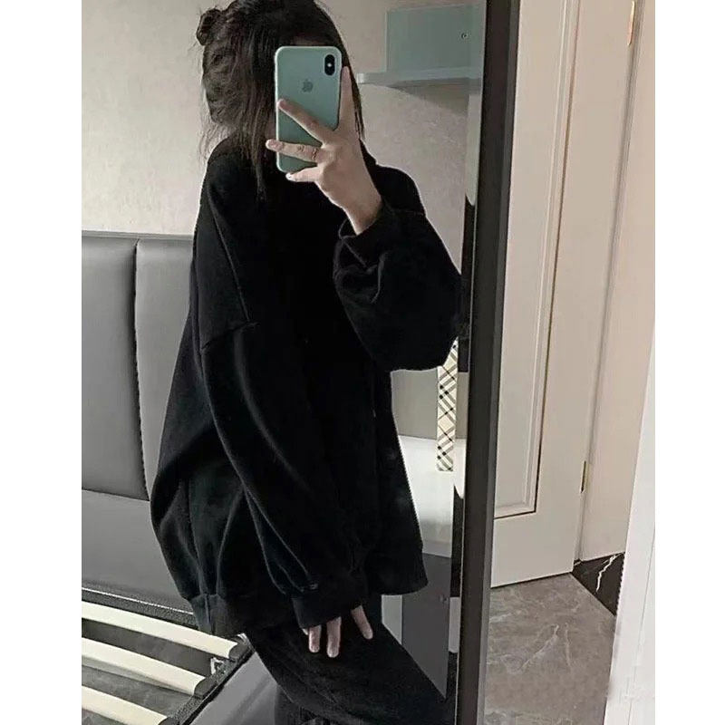 Черная парная одежда, осенняя толстовка с капюшоном, для влюбленных, 2023, в американском стиле, оверсайз