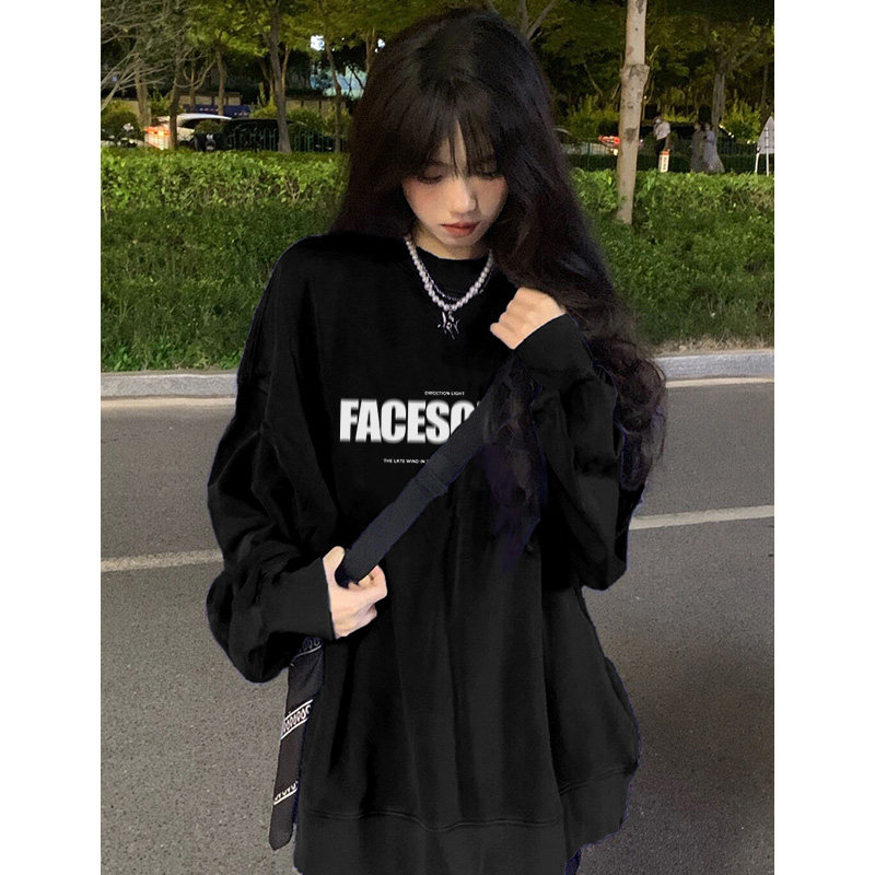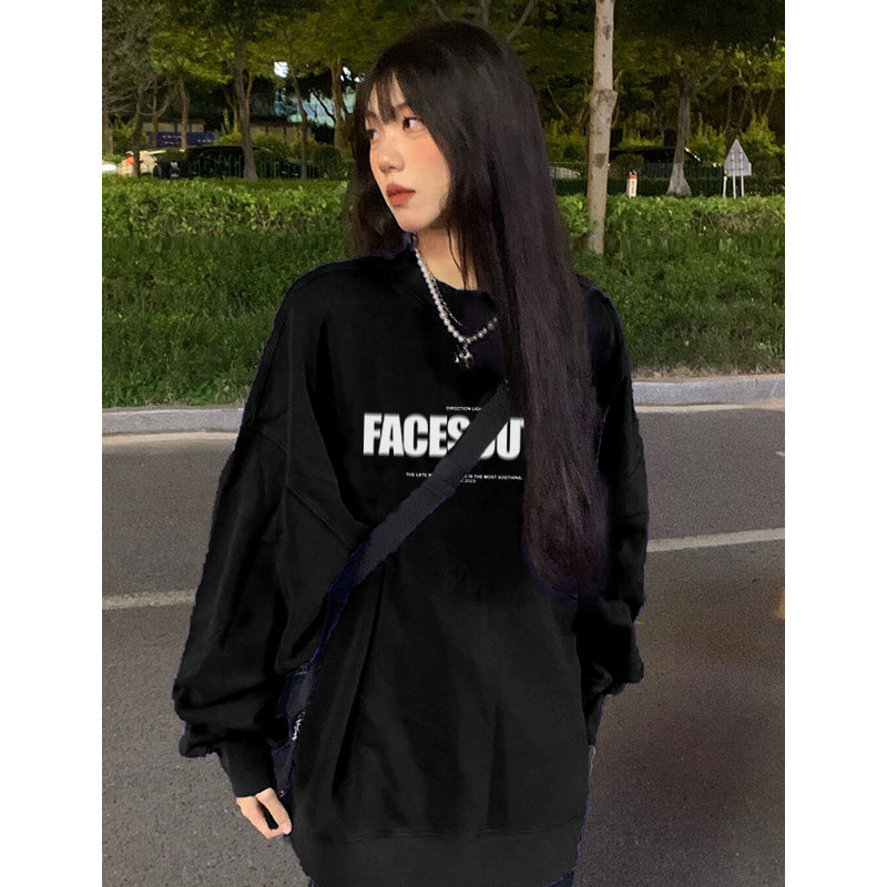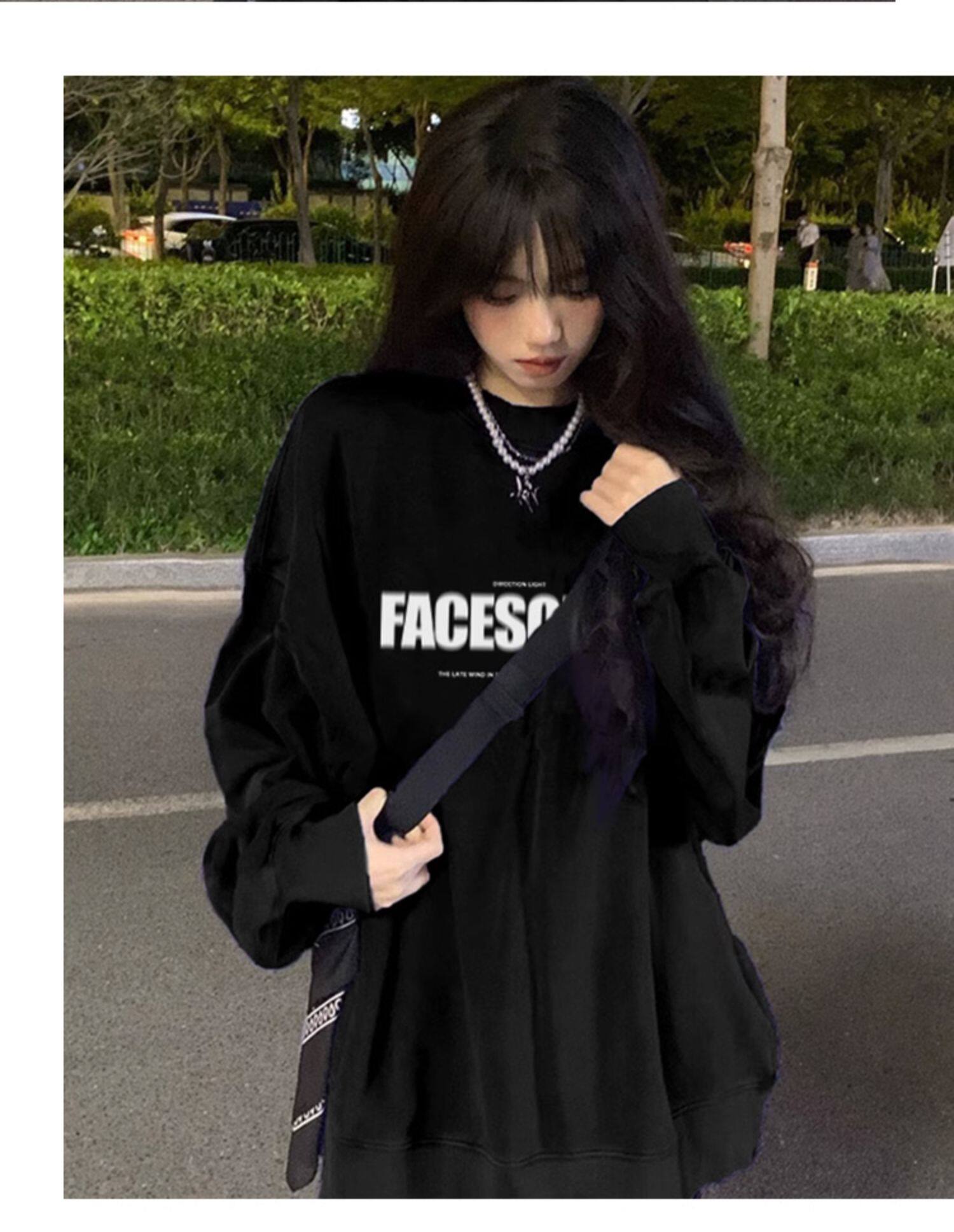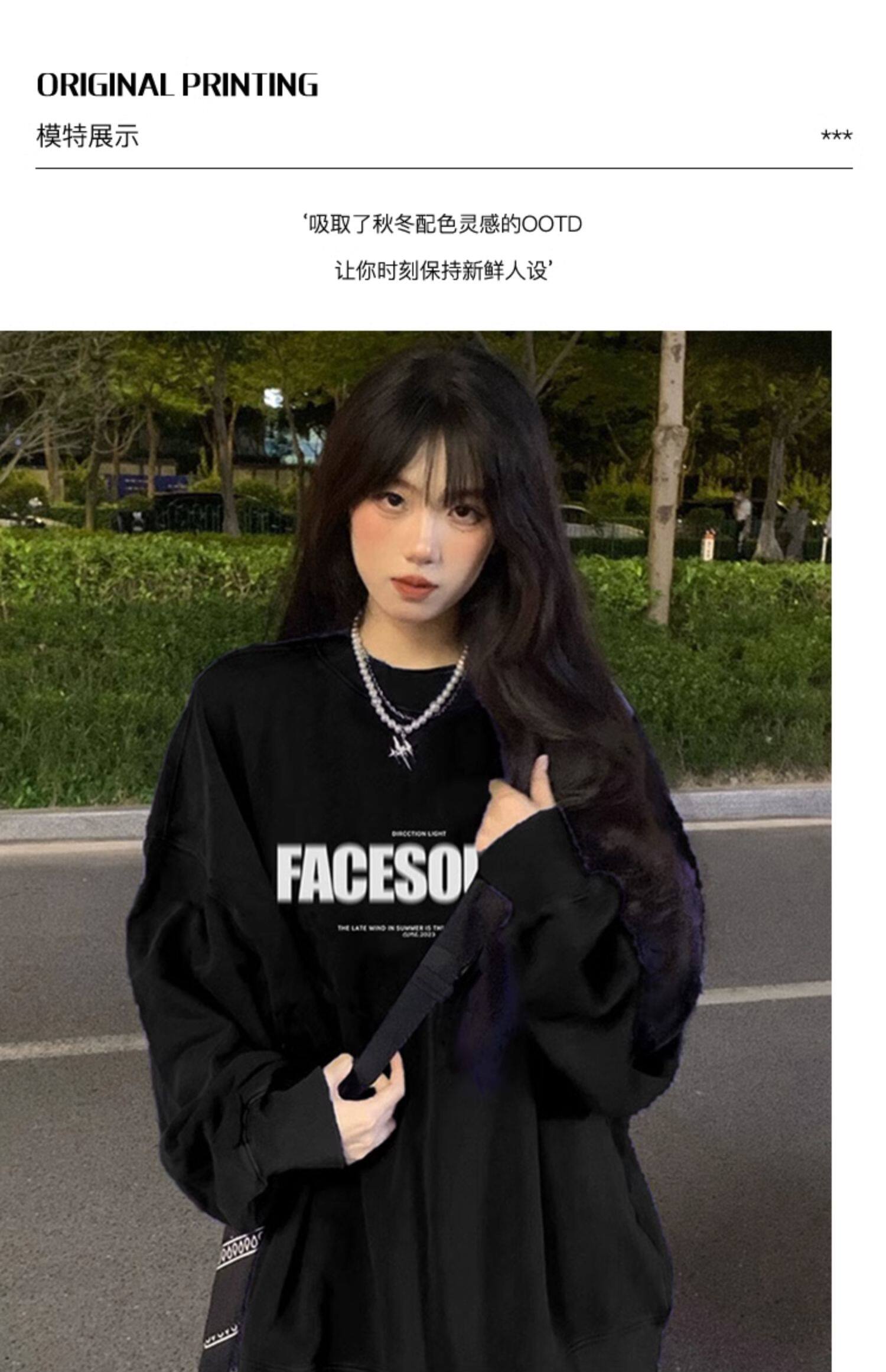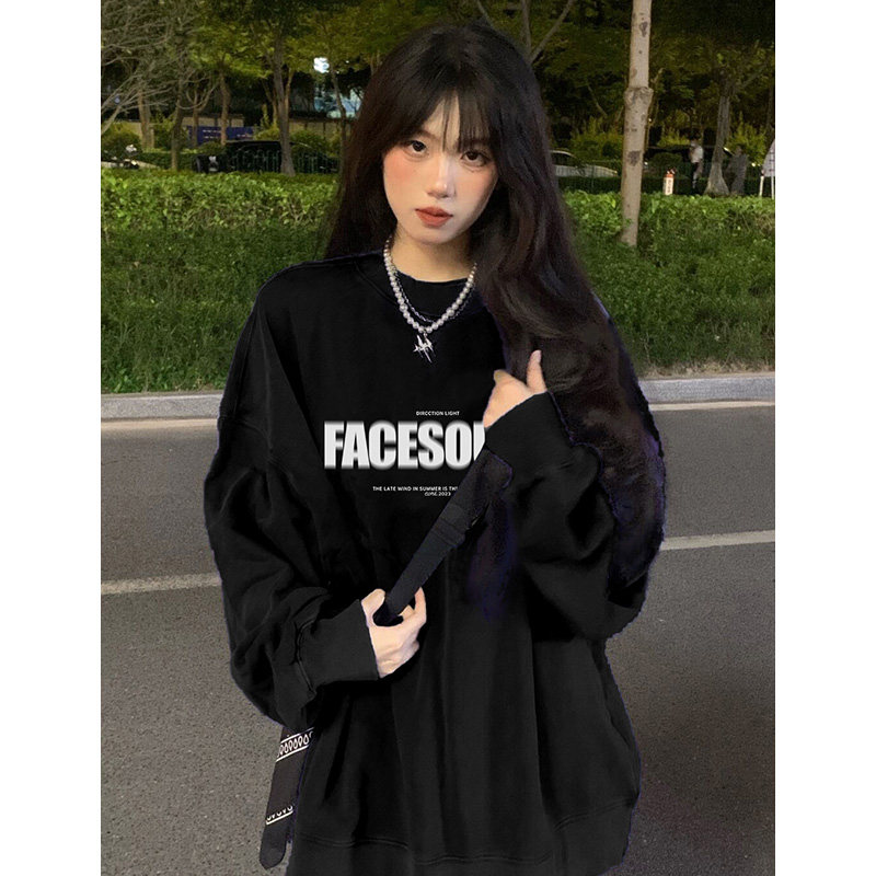 Оригинальный черный лонгслив, осенний брендовый свитшот для отдыха, оверсайз
