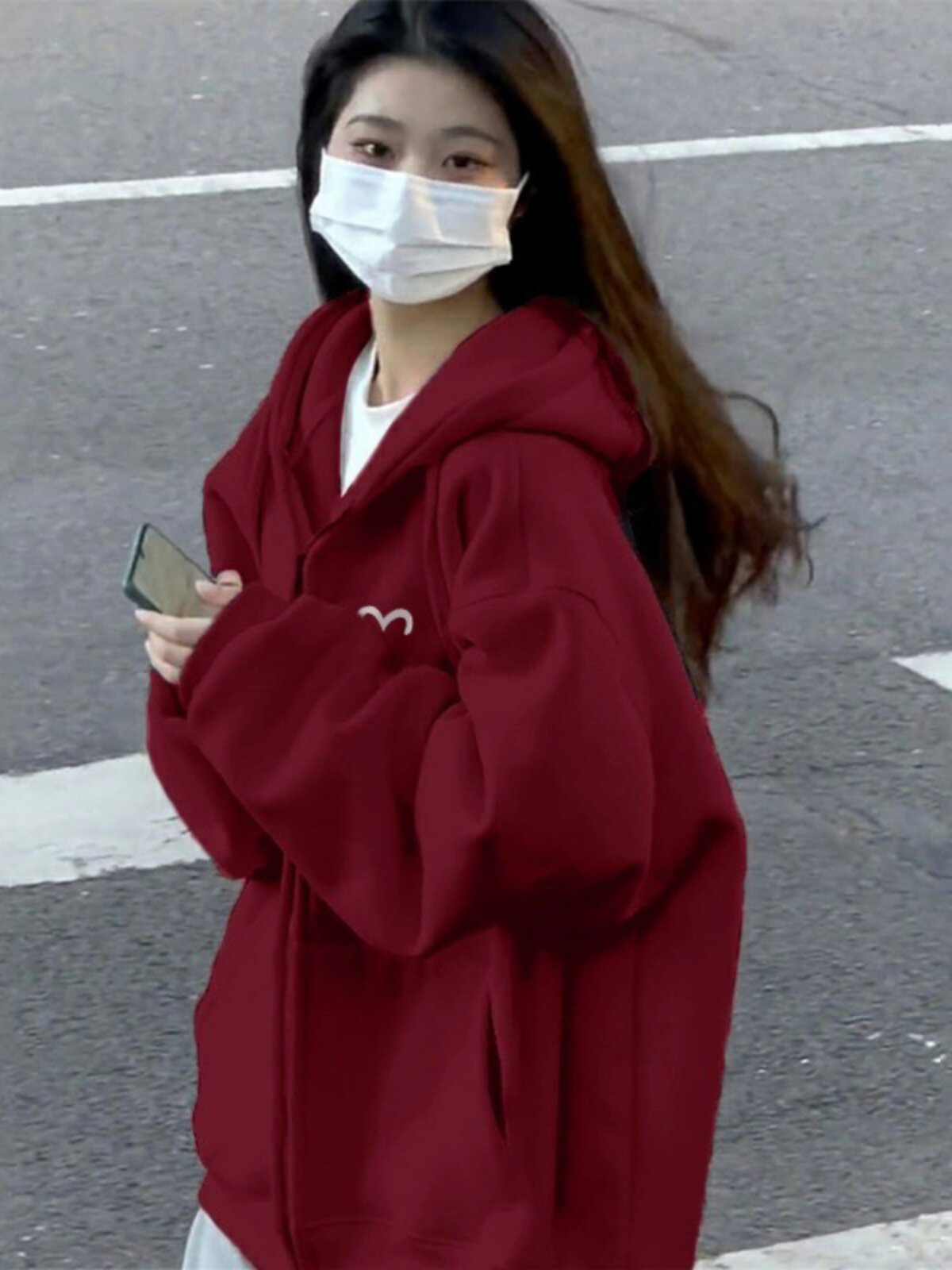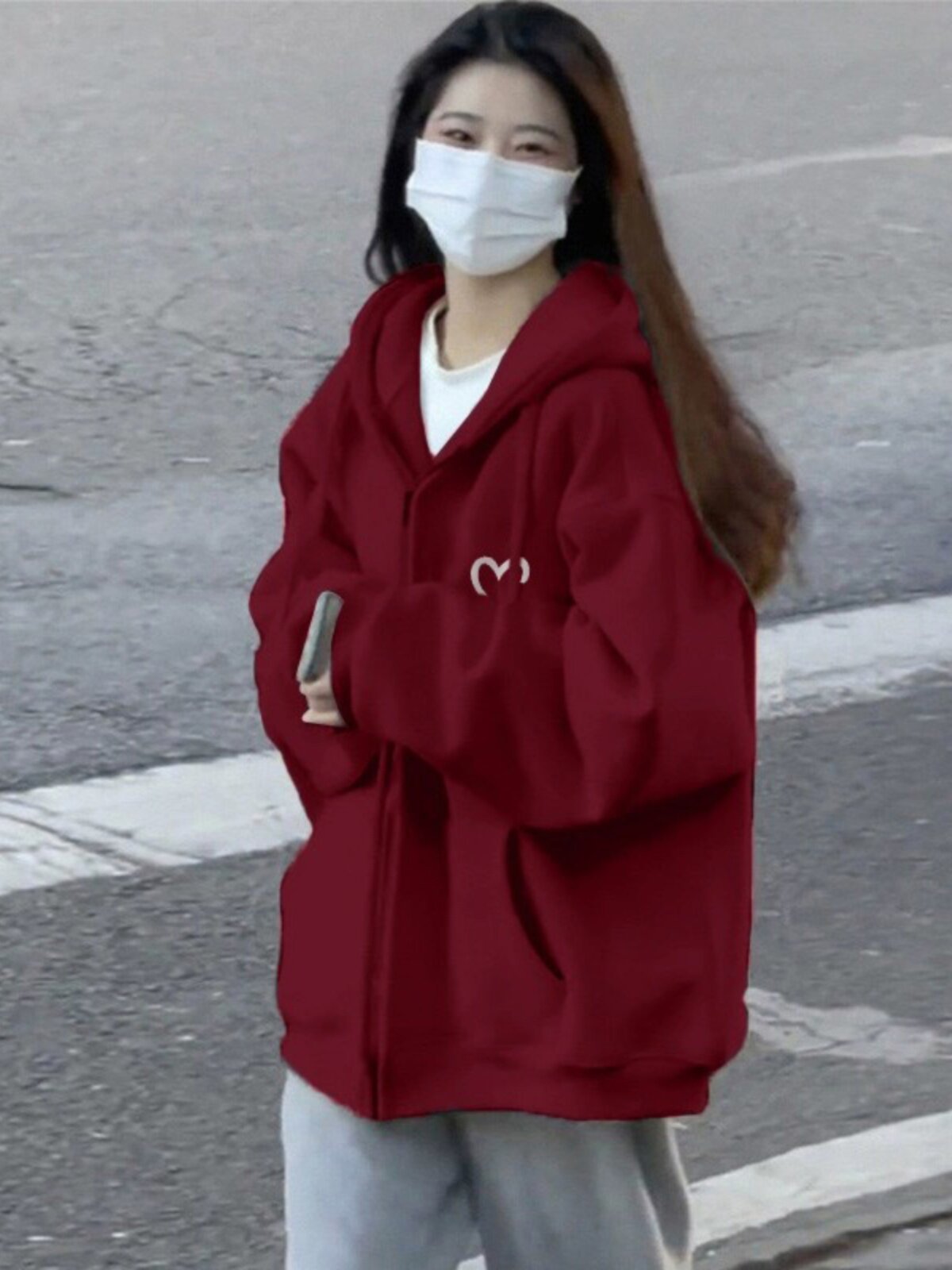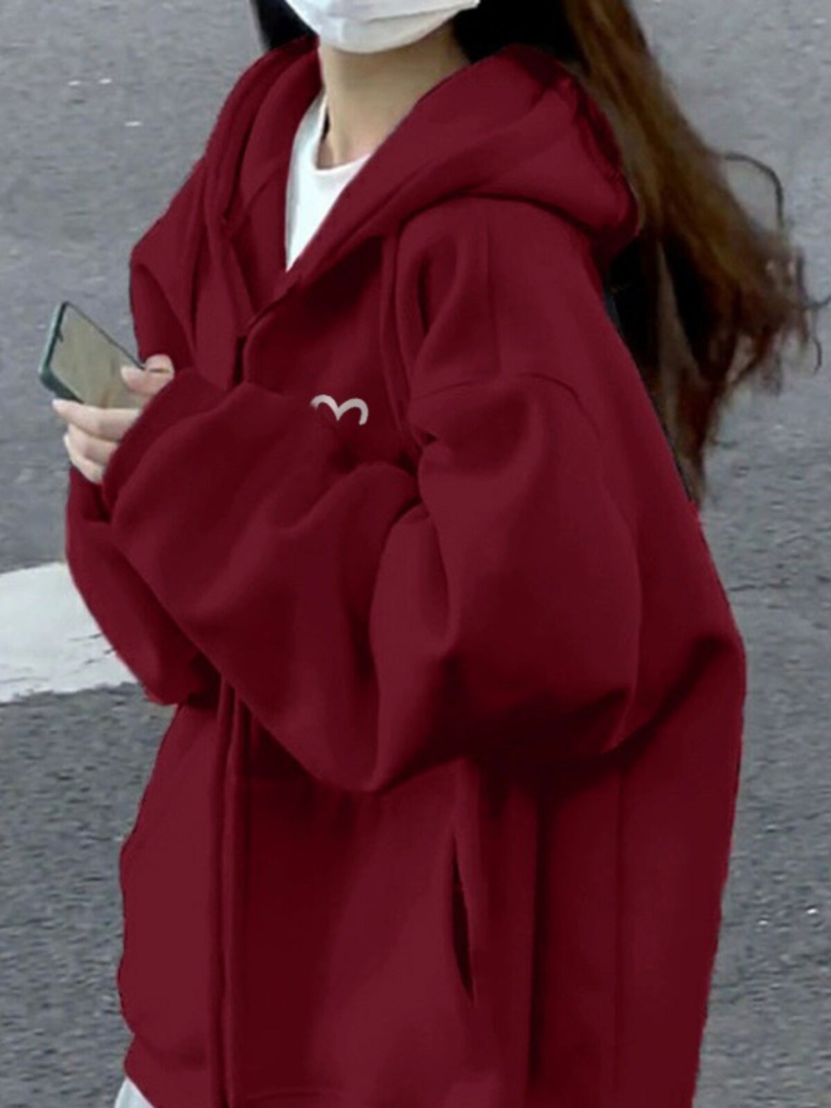 Осенний утепленный бордовый кардиган с молнией, куртка, толстовка с капюшоном, оверсайз