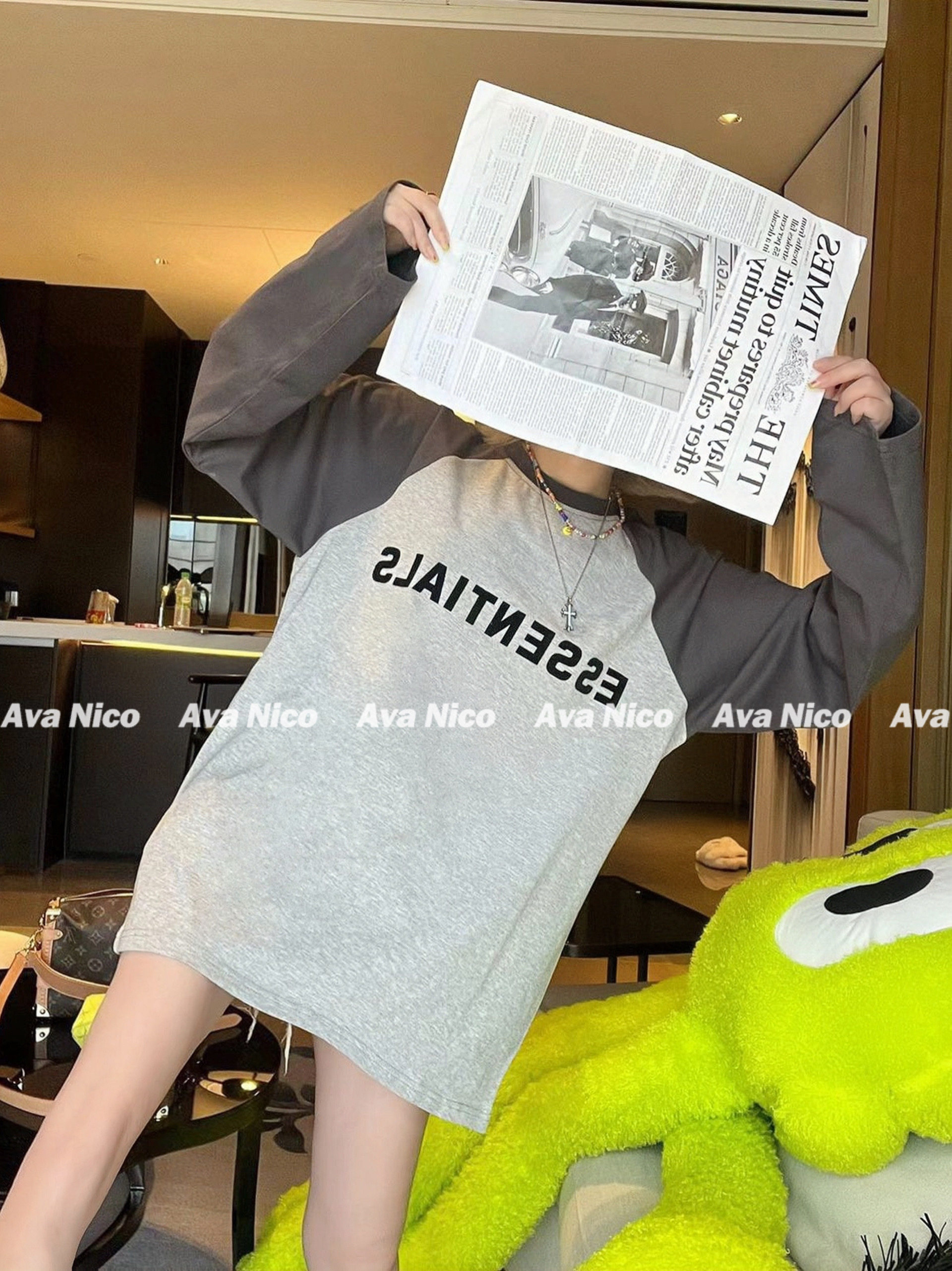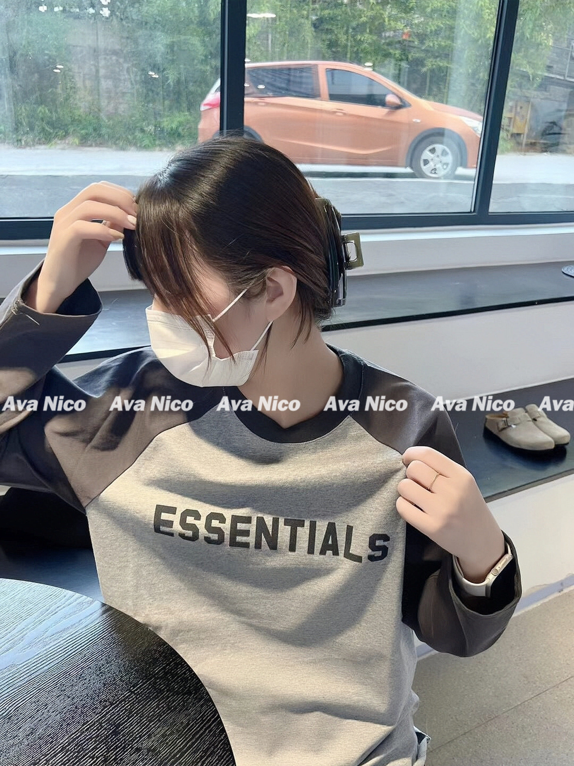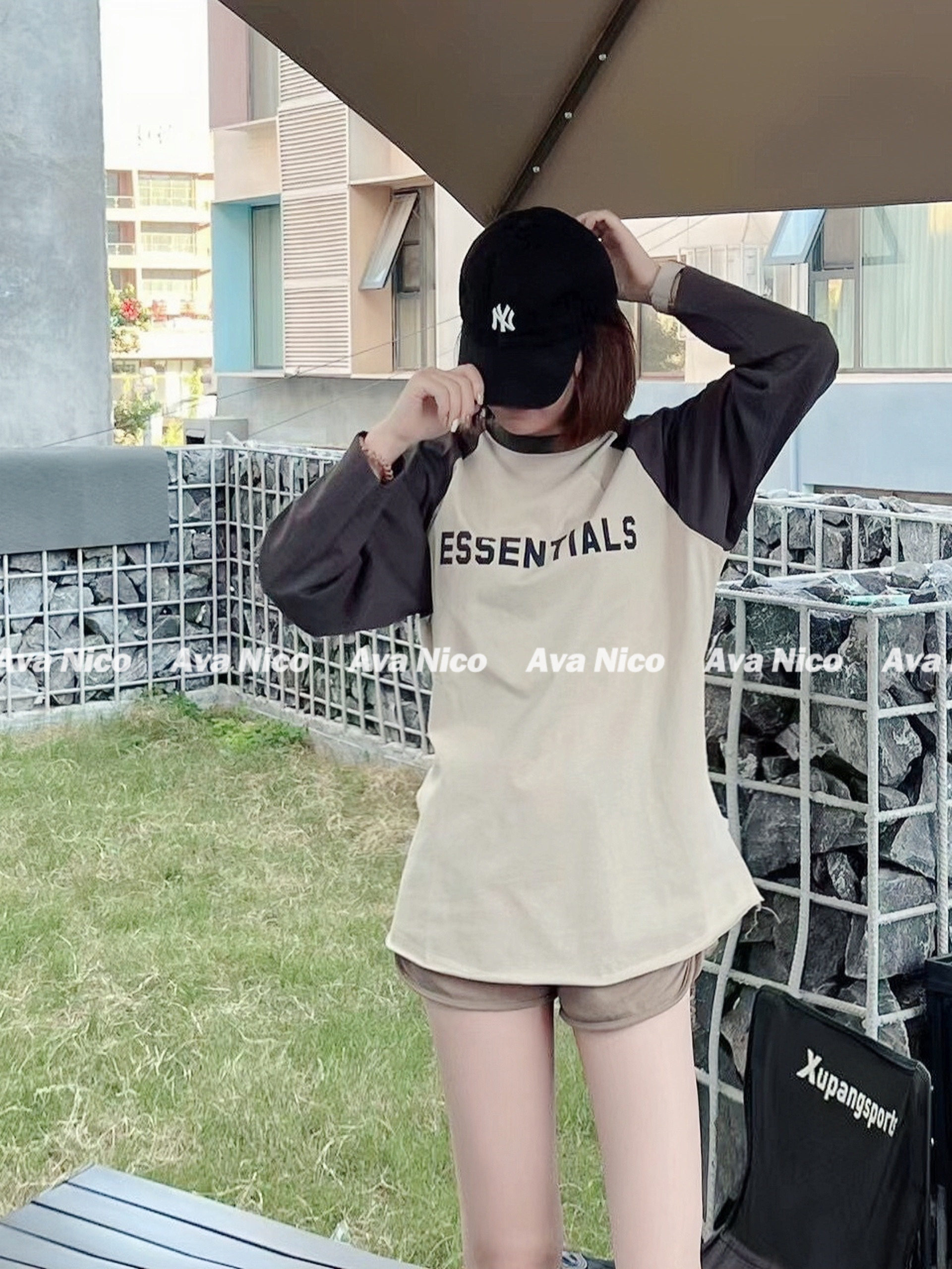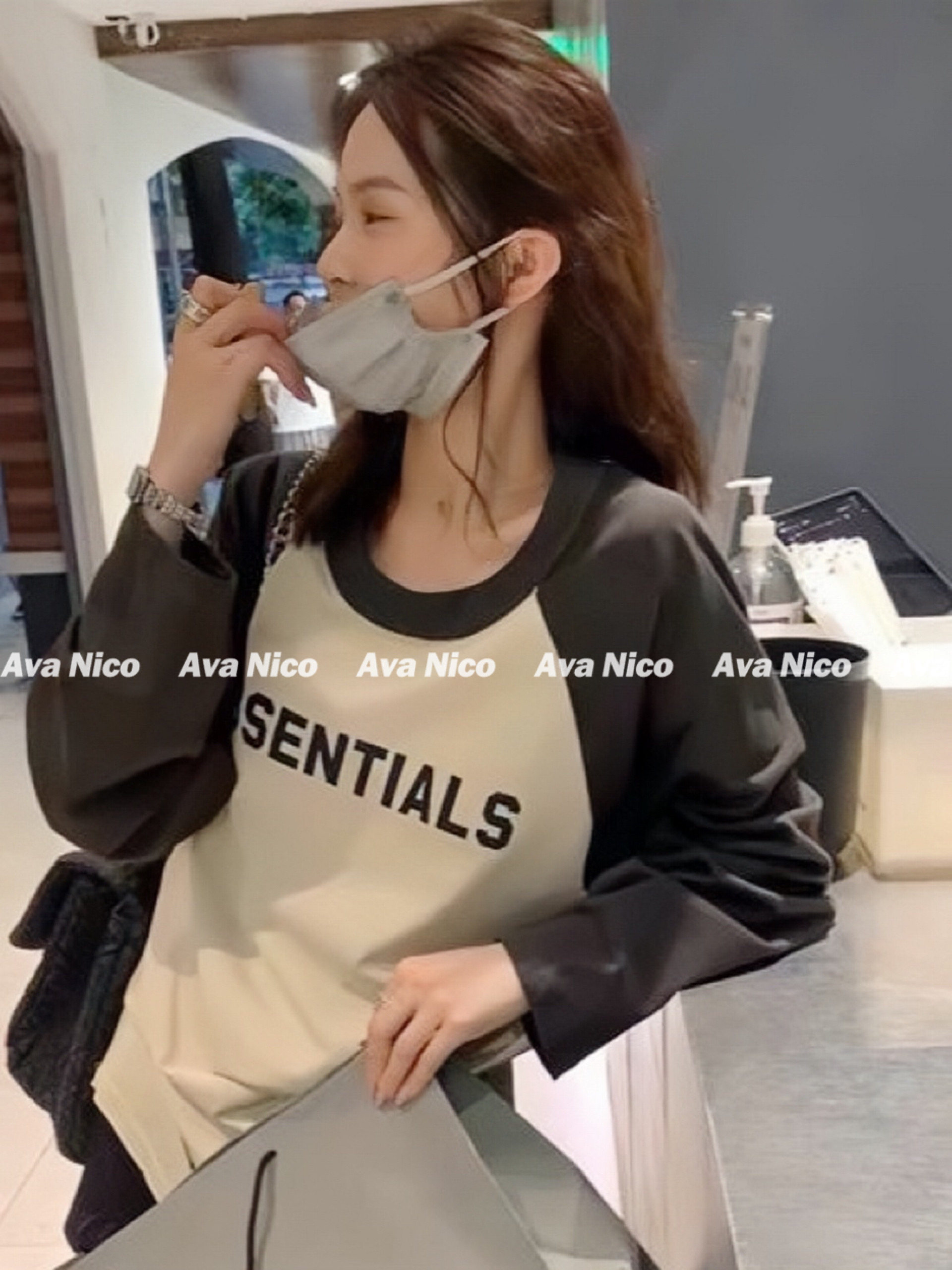 Первый раз за стойкой!FOG FEAR OF GOD Футболка с длинными рукавами и надписью реглан в стиле пэчворк с несколькими стежками ESSENTIALS