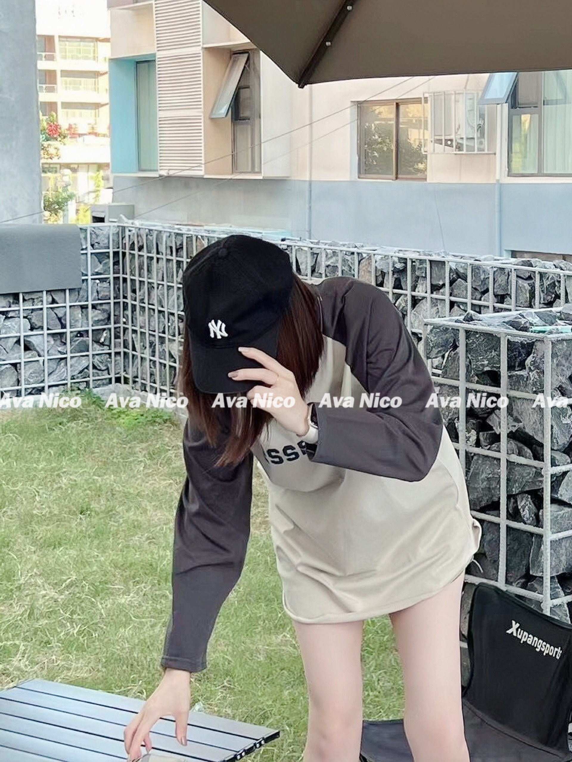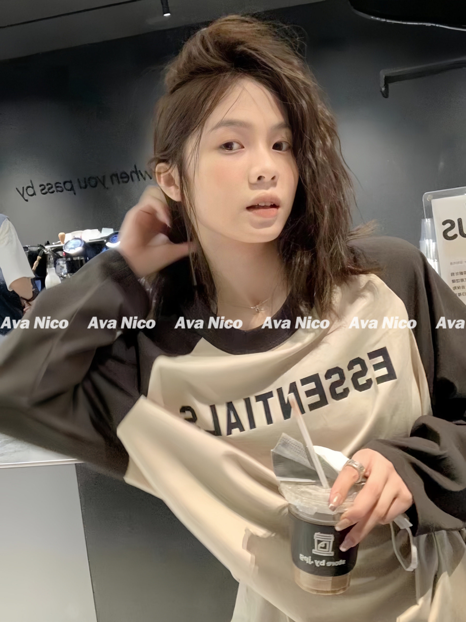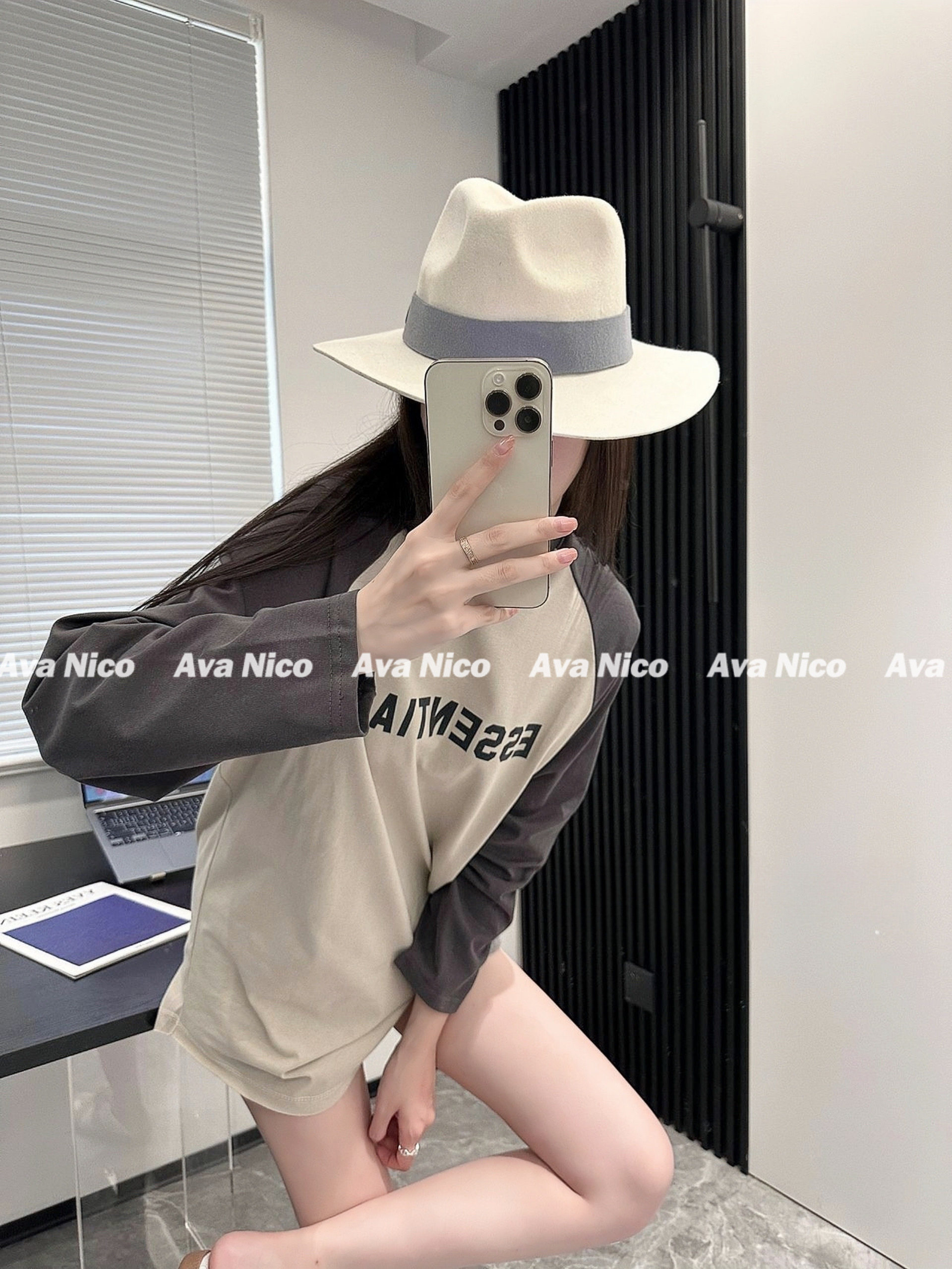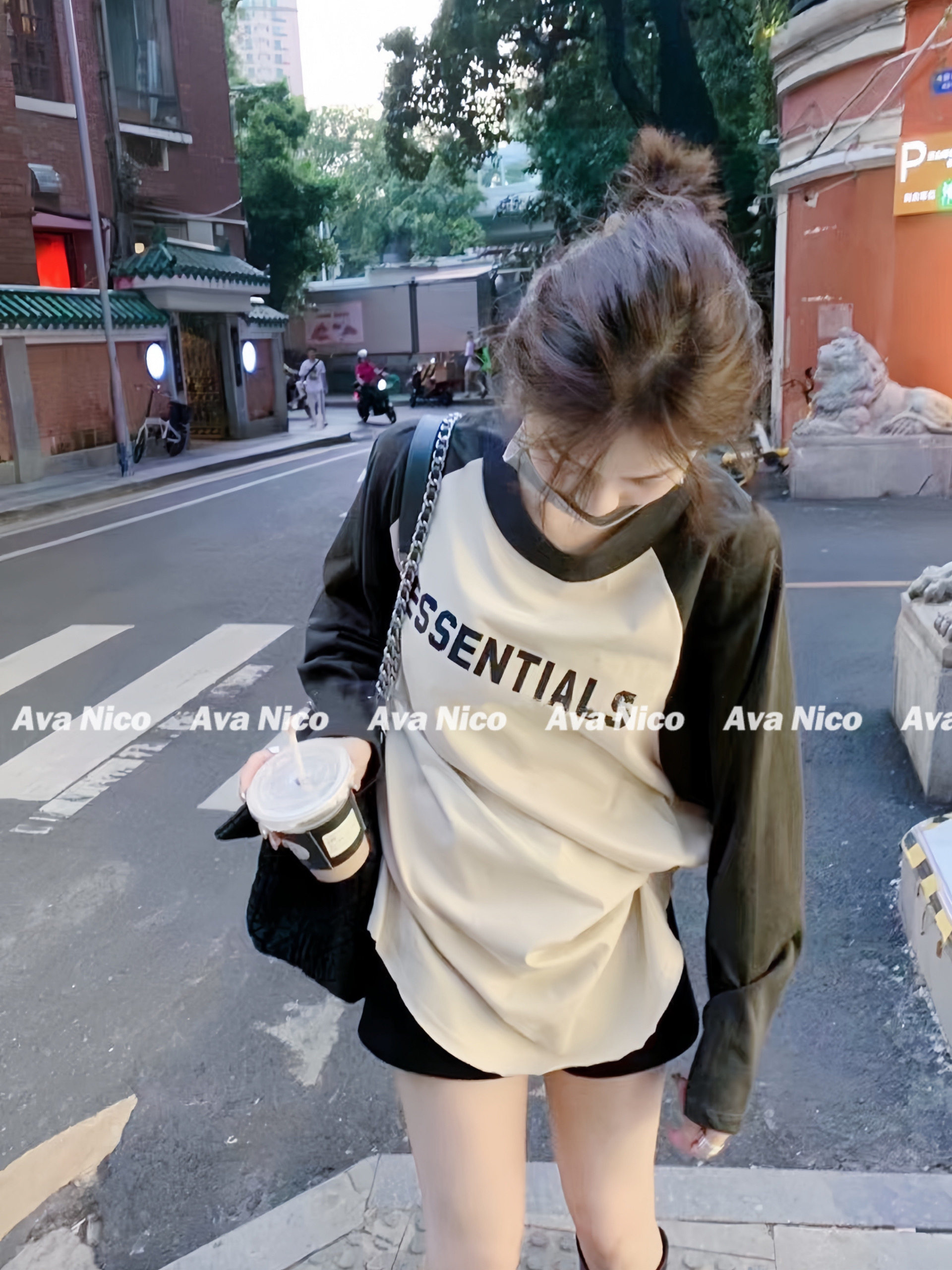 Первый раз за стойкой!FOG FEAR OF GOD Футболка с длинными рукавами и надписью реглан в стиле пэчворк с несколькими стежками ESSENTIALS