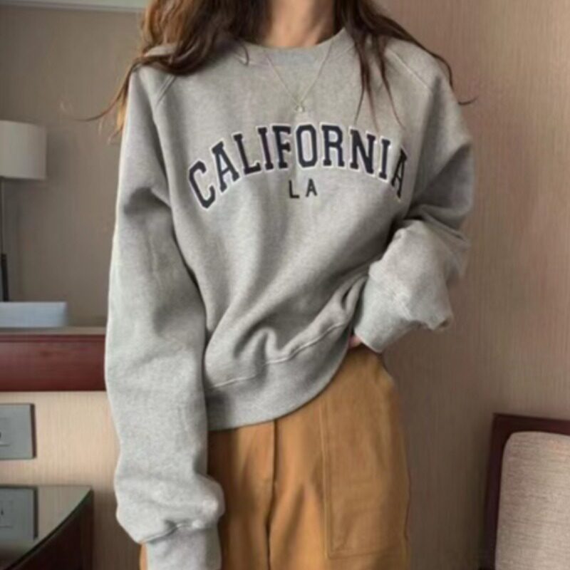 Демисезонная толстовка, лонгслив для отдыха, в корейском стиле, увеличенная толщина, с вышивкой, коллекция 2023