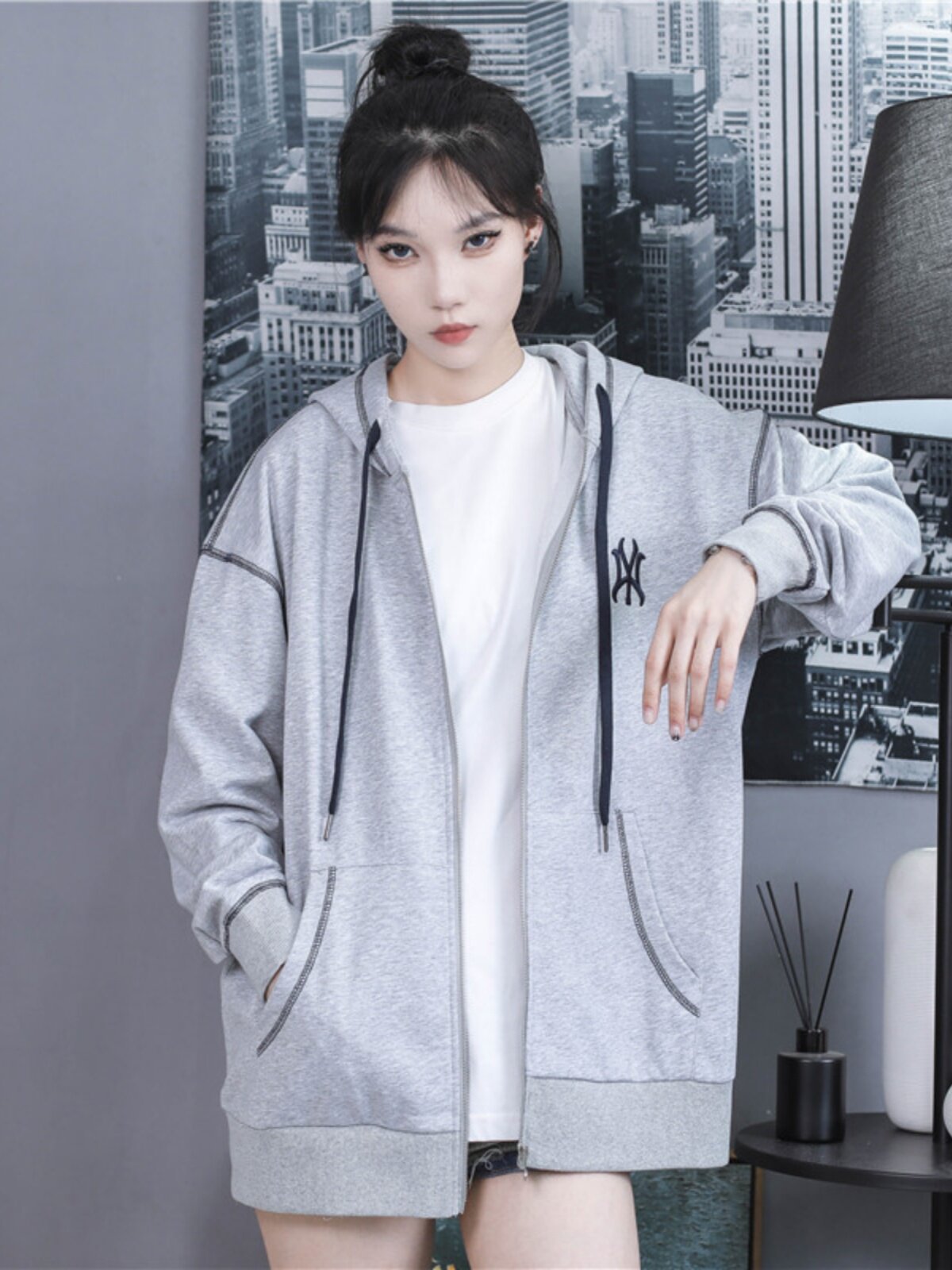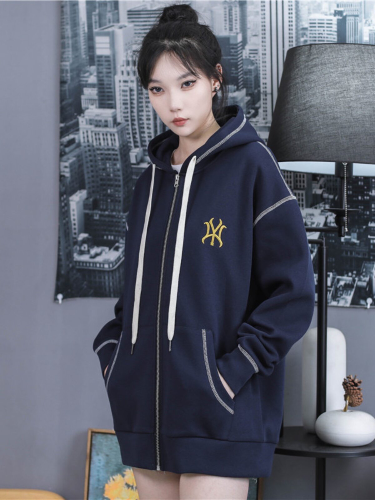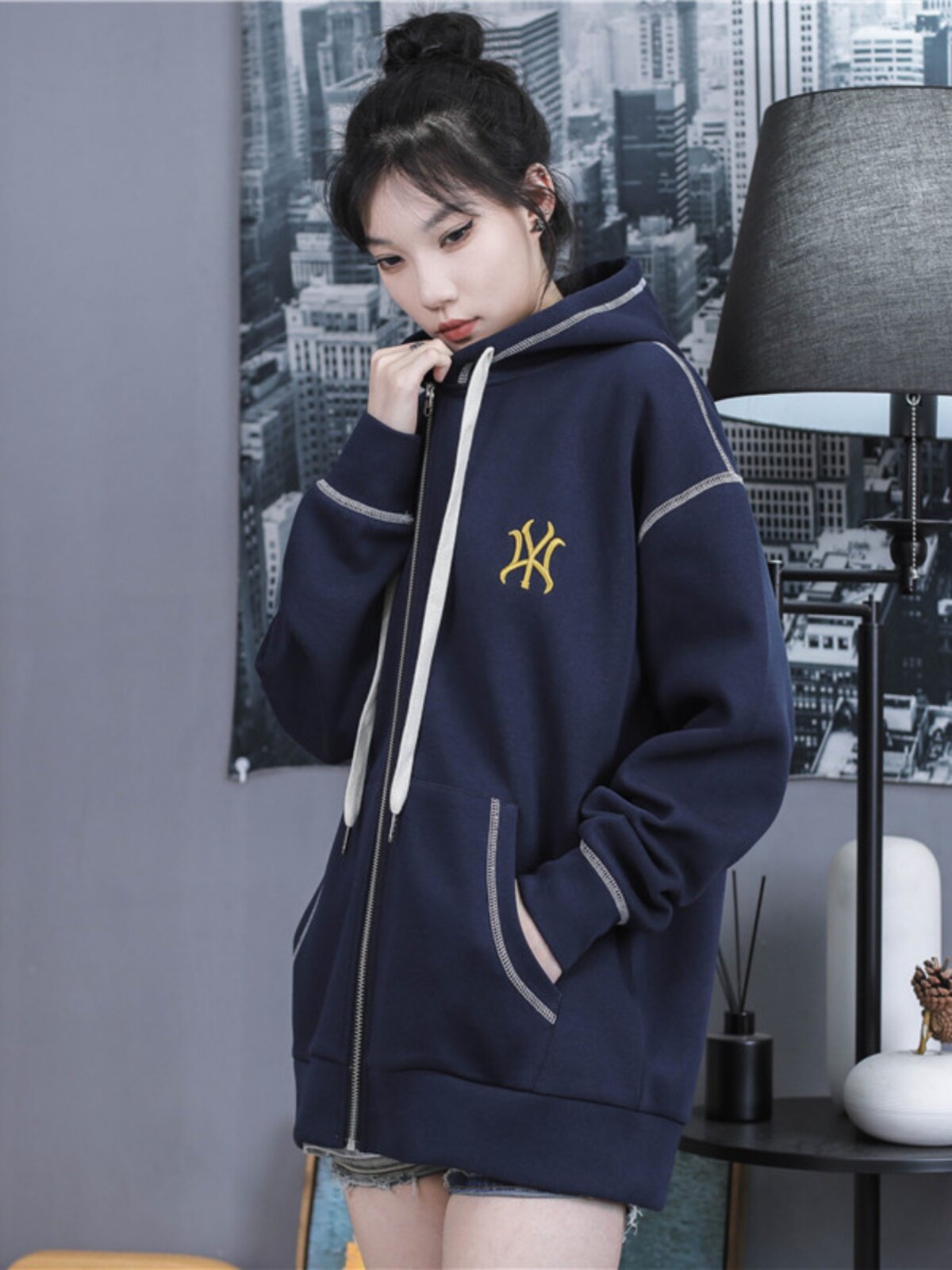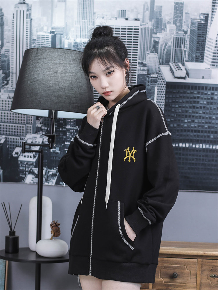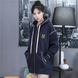 MLBGU NY Трендовая толстовка, демисезонная черная куртка, кардиган с капюшоном с молнией, с вышивкой