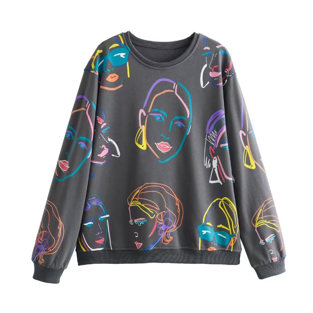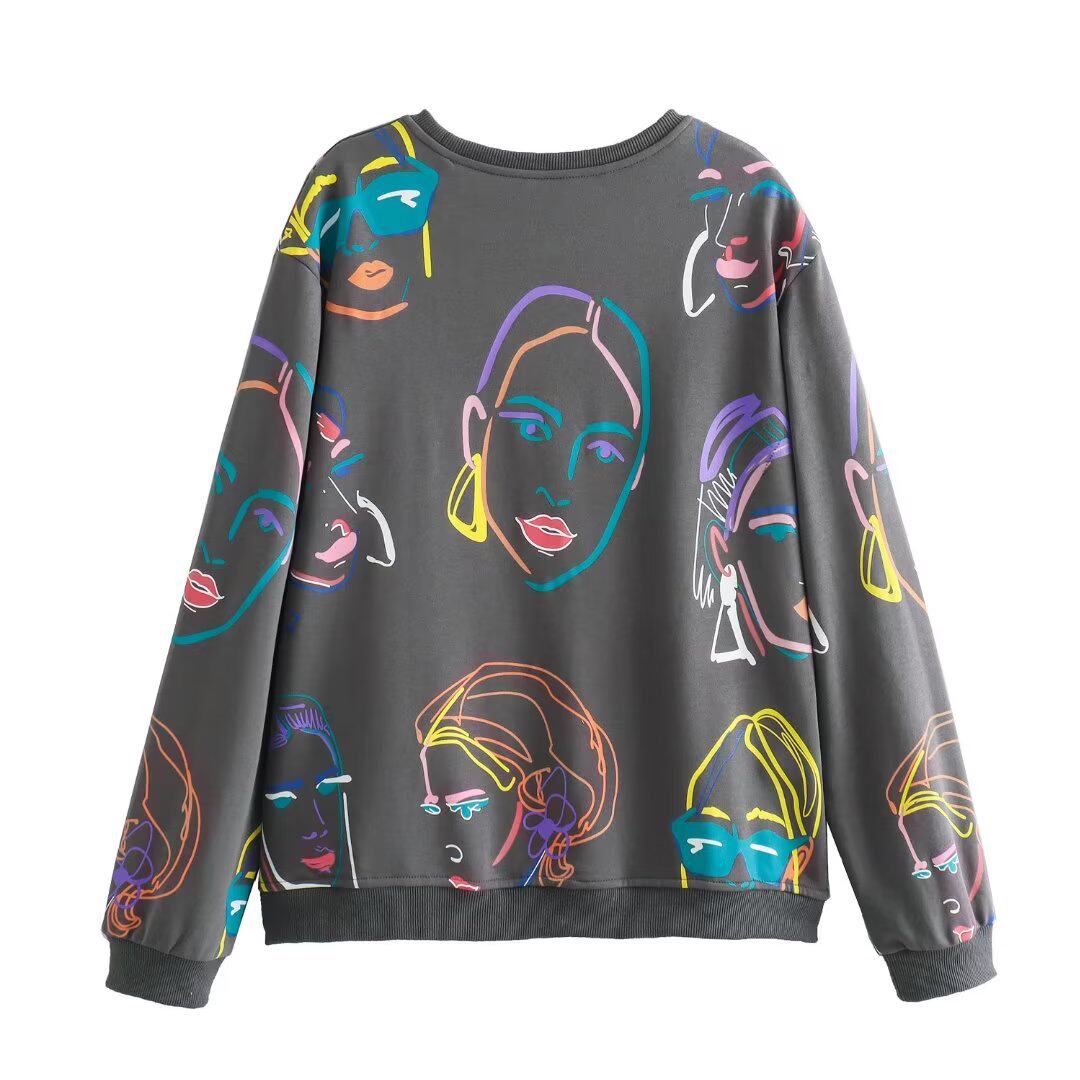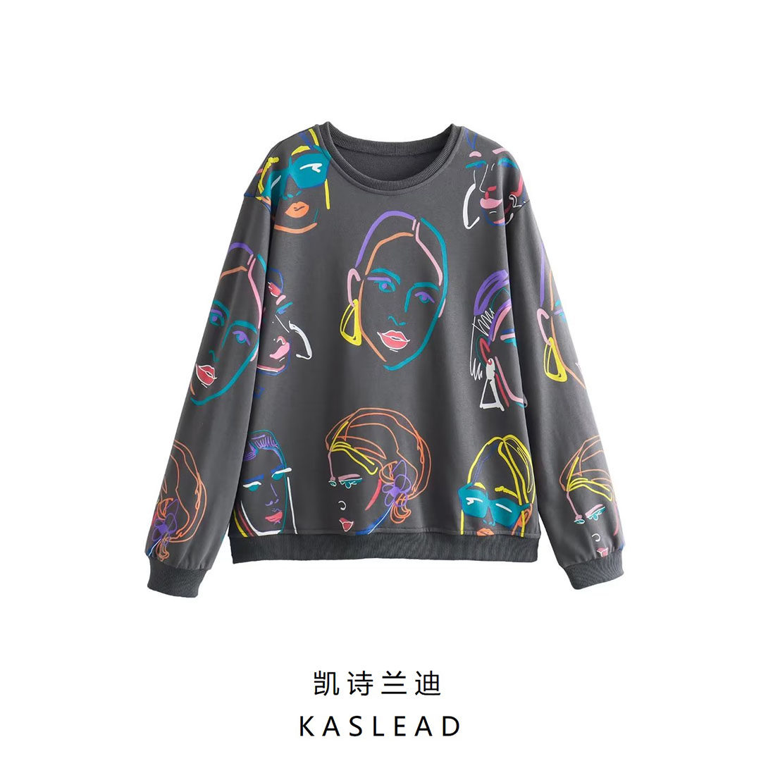 Kaslead Новая женская одежда европейская и американская круглая шея спереди, контрастная цветовая девушка с длинными рукавами толстовка с длинными рукавами