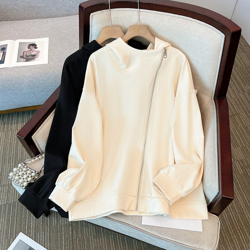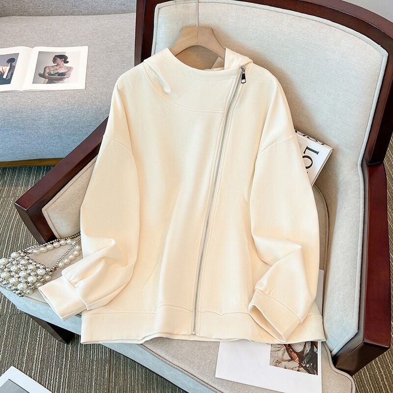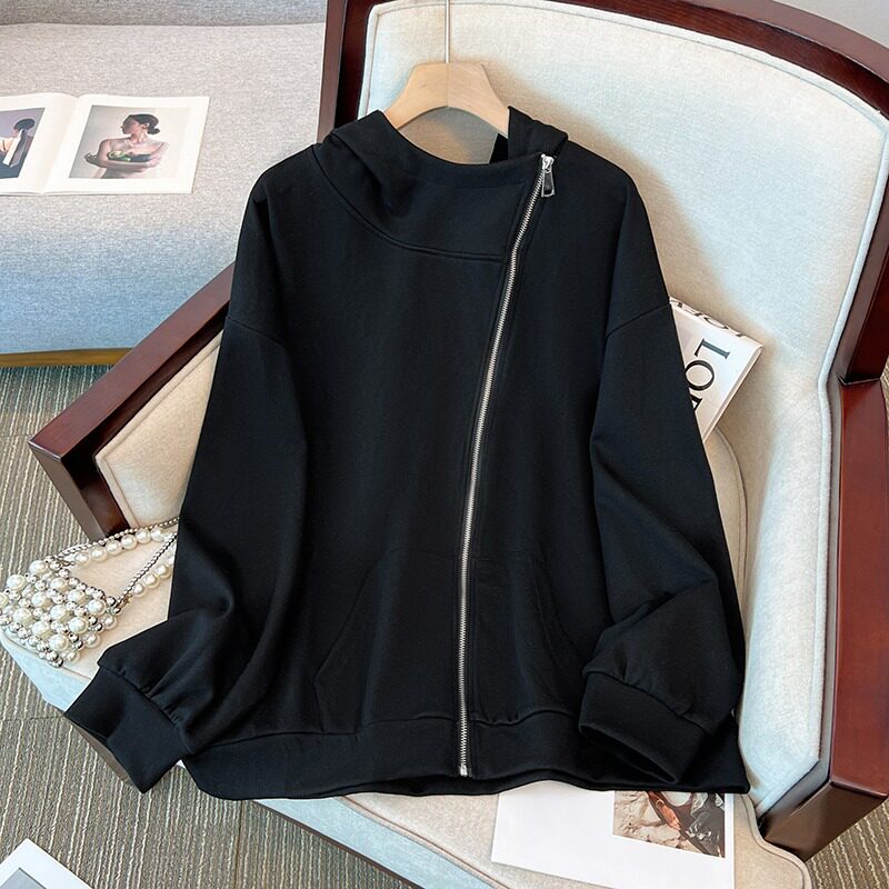 Осенняя небольшая толстовка с капюшоном с молнией, дизайнерский кардиган, большой размер, оверсайз, тренд сезона