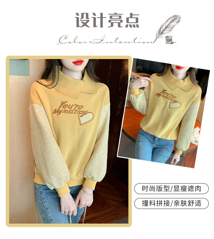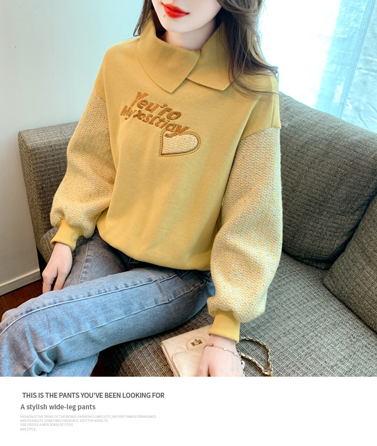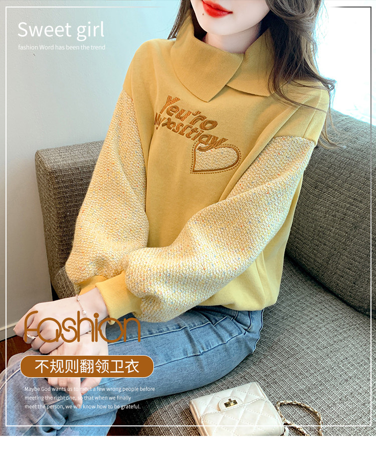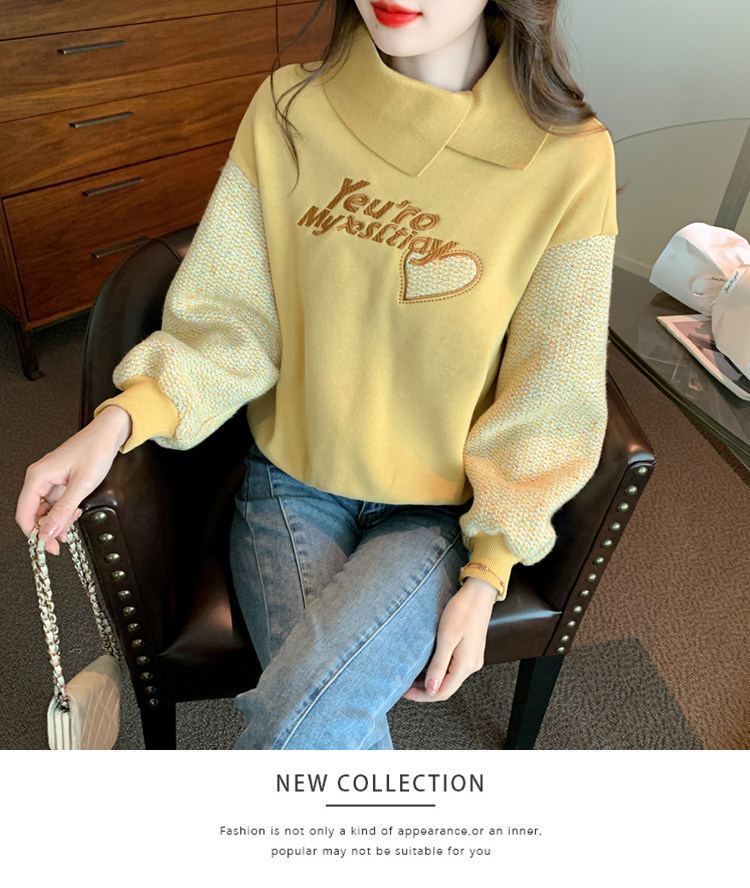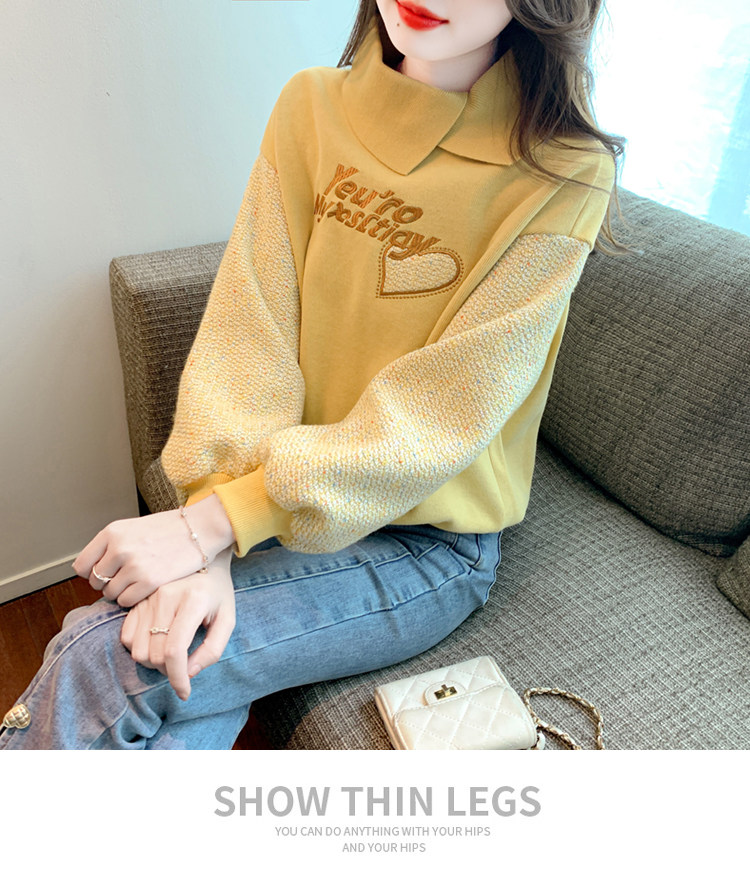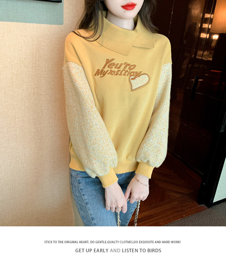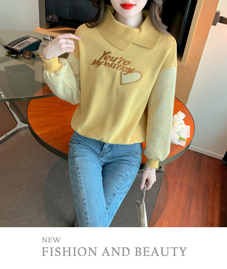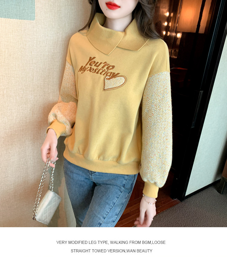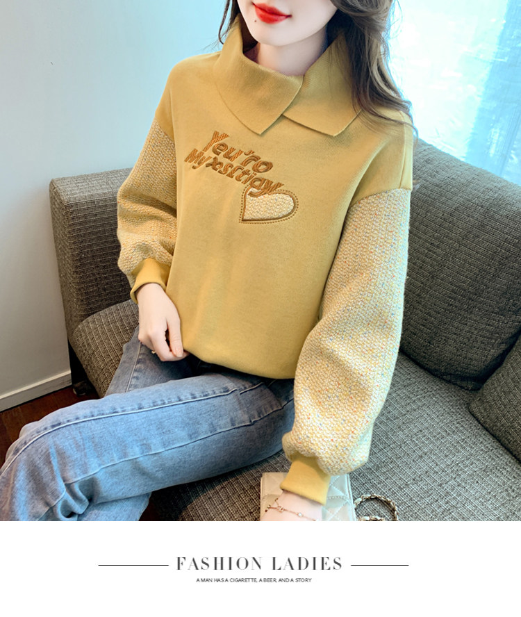 Утепленная демисезонная утепленная толстовка, лонгслив, высокий воротник, коллекция 2023, увеличенная толщина, с вышивкой, в западном стиле