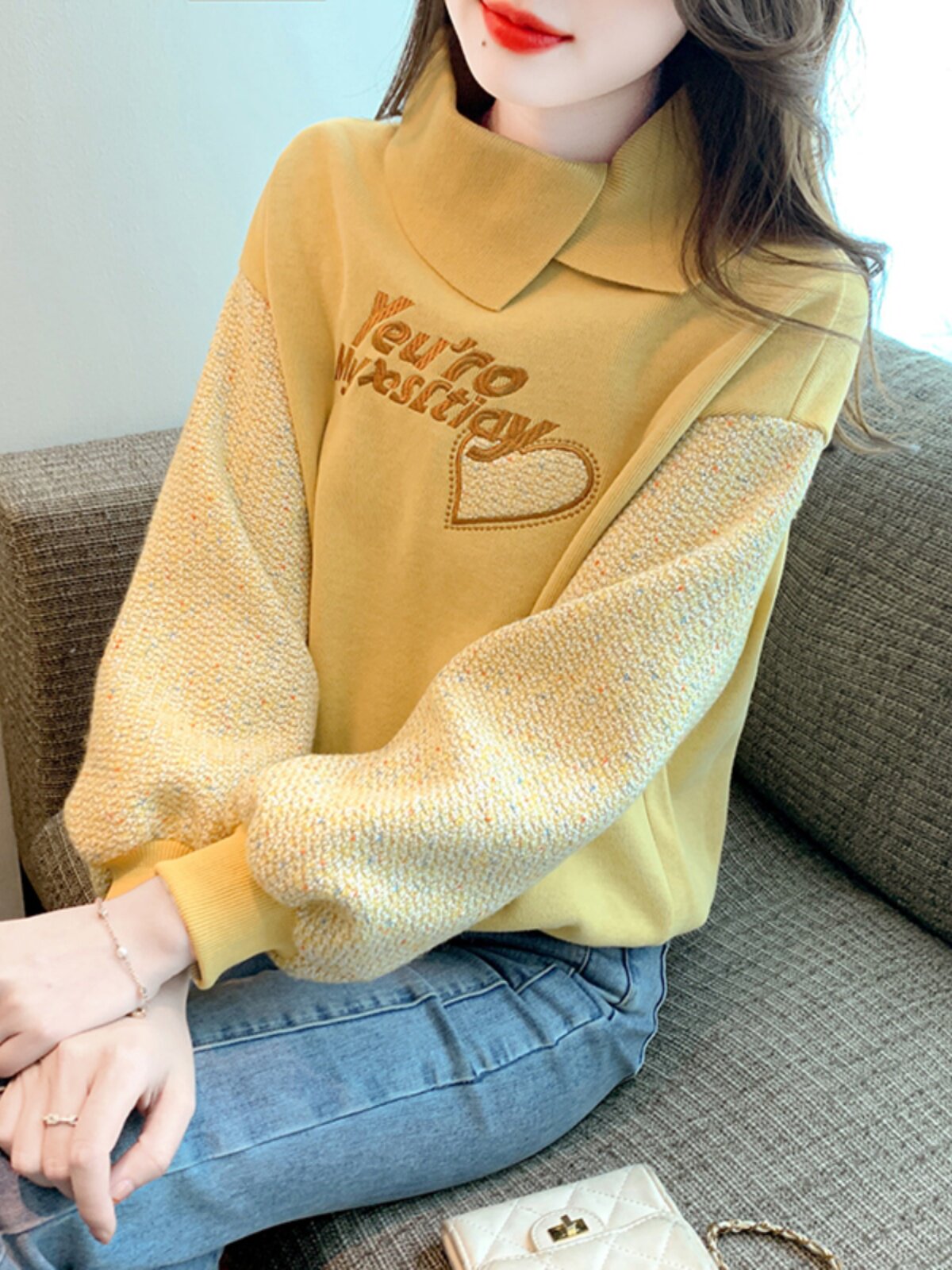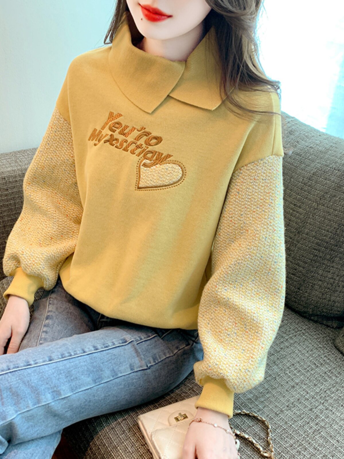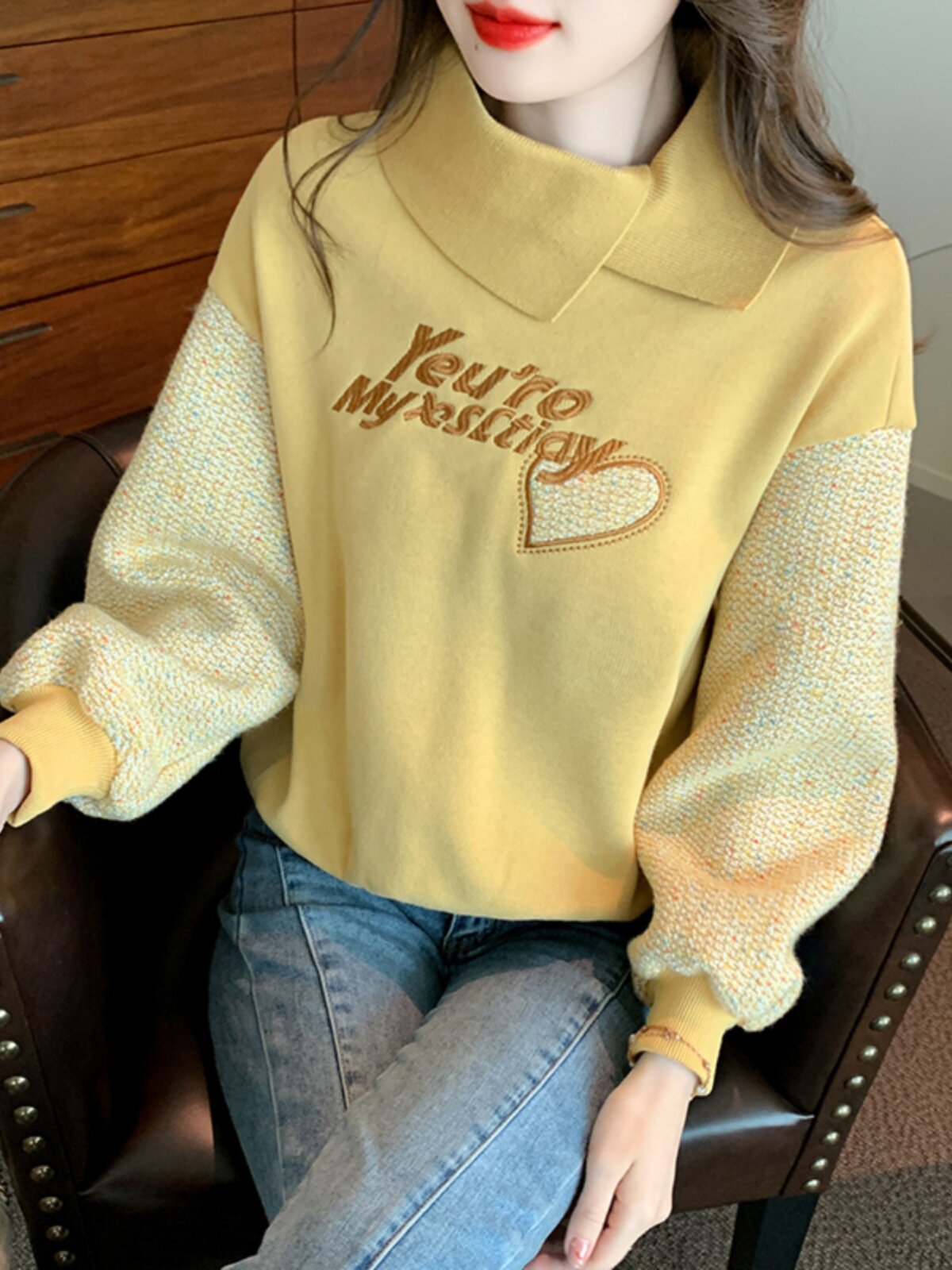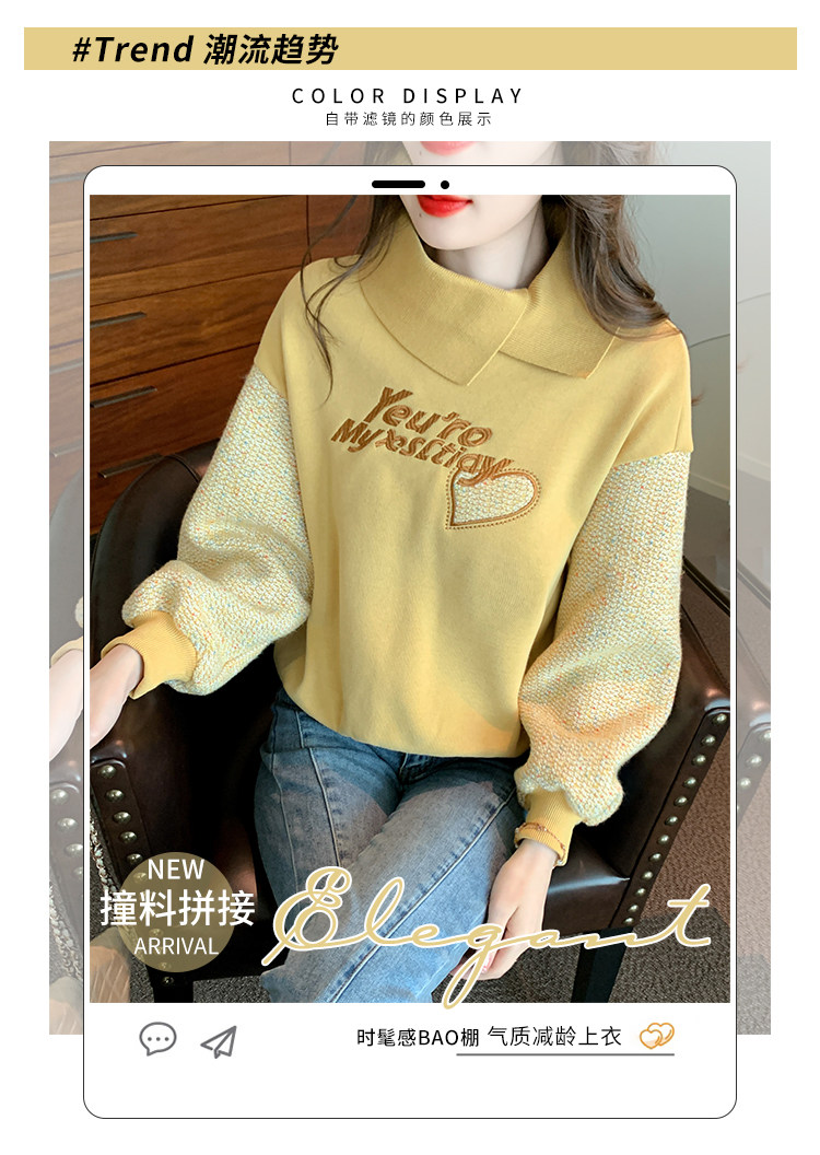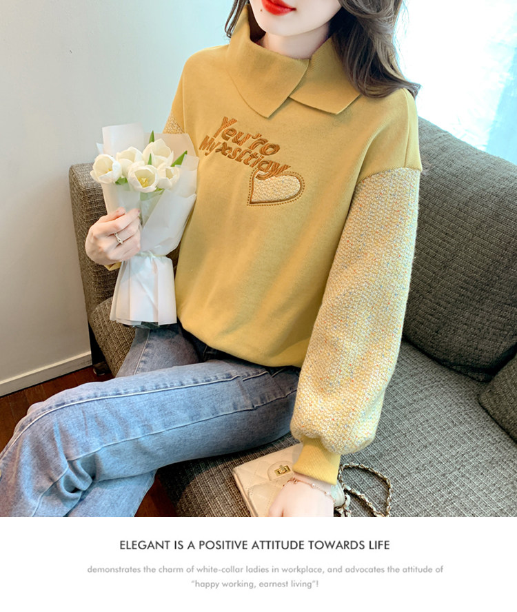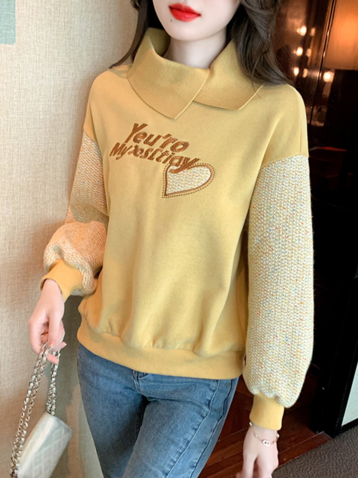 Утепленная демисезонная утепленная толстовка, лонгслив, высокий воротник, коллекция 2023, увеличенная толщина, с вышивкой, в западном стиле