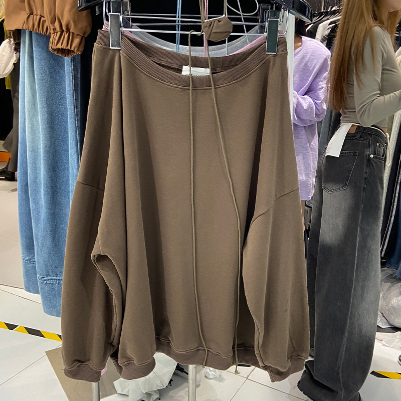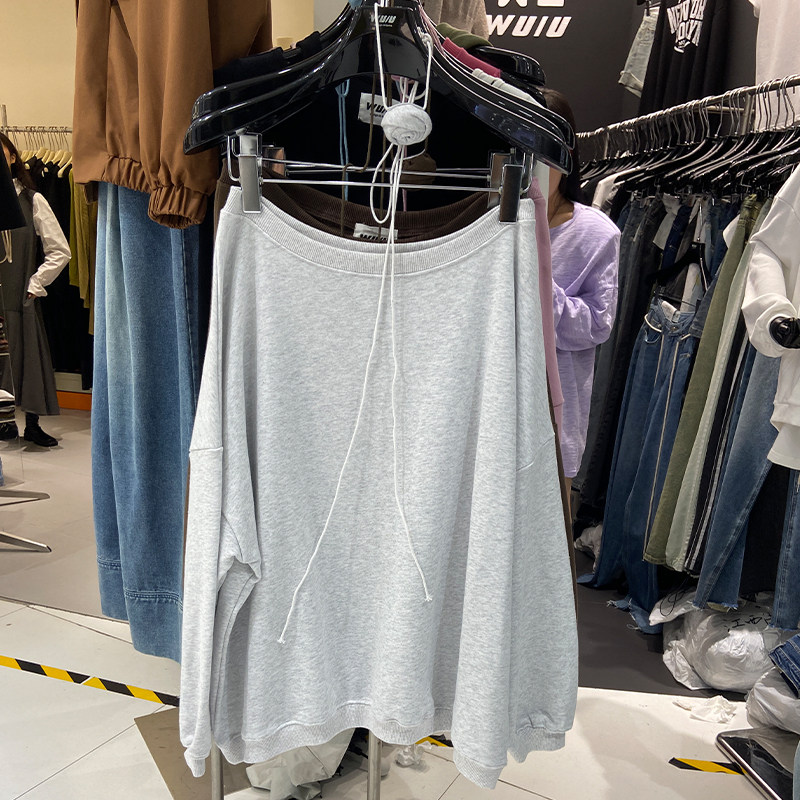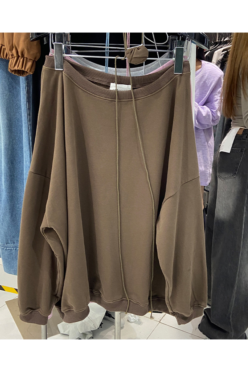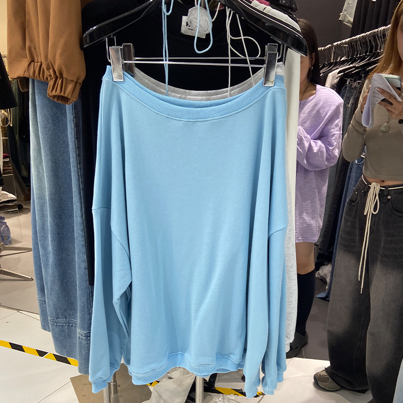 Дизайнерский осенний ретро лонгслив, тренд сезона, открытые плечи и длинный рукав, в американском стиле, оверсайз