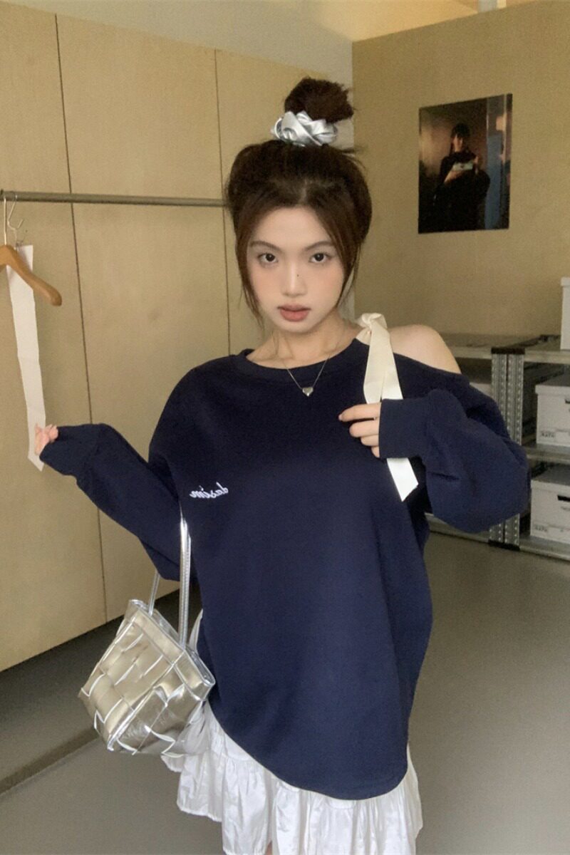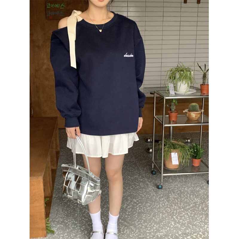 Pphome Sweet Cool Nimo ~ Дизайн раскрывает плечи и кружево -плавник осенний лень, свободный и свободный воротник дикая куртка