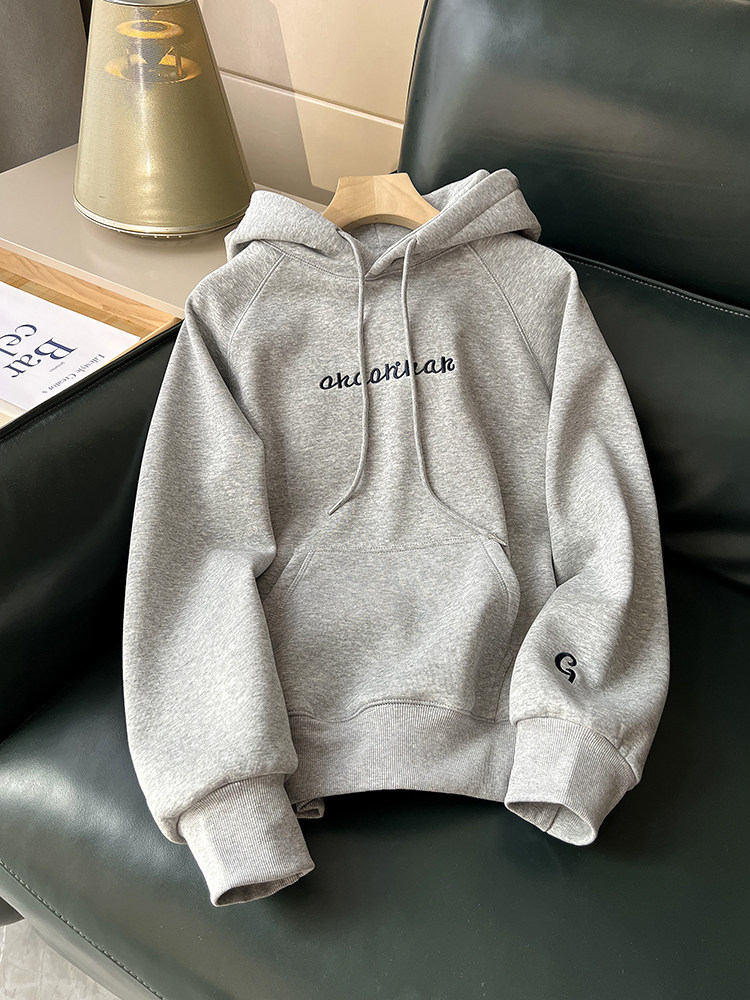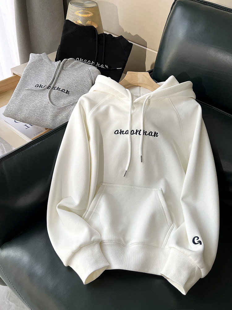 Весенняя осенняя тонкая утепленная толстовка с капюшоном, с вышивкой, свободный крой