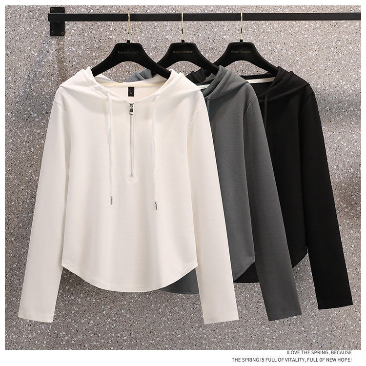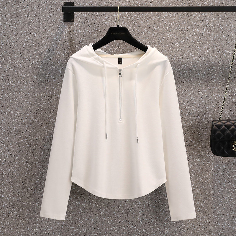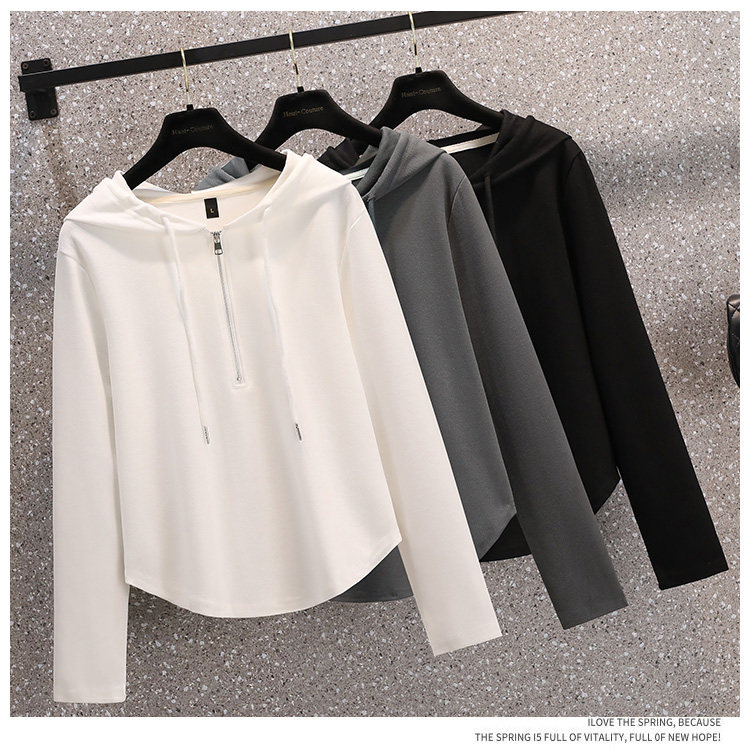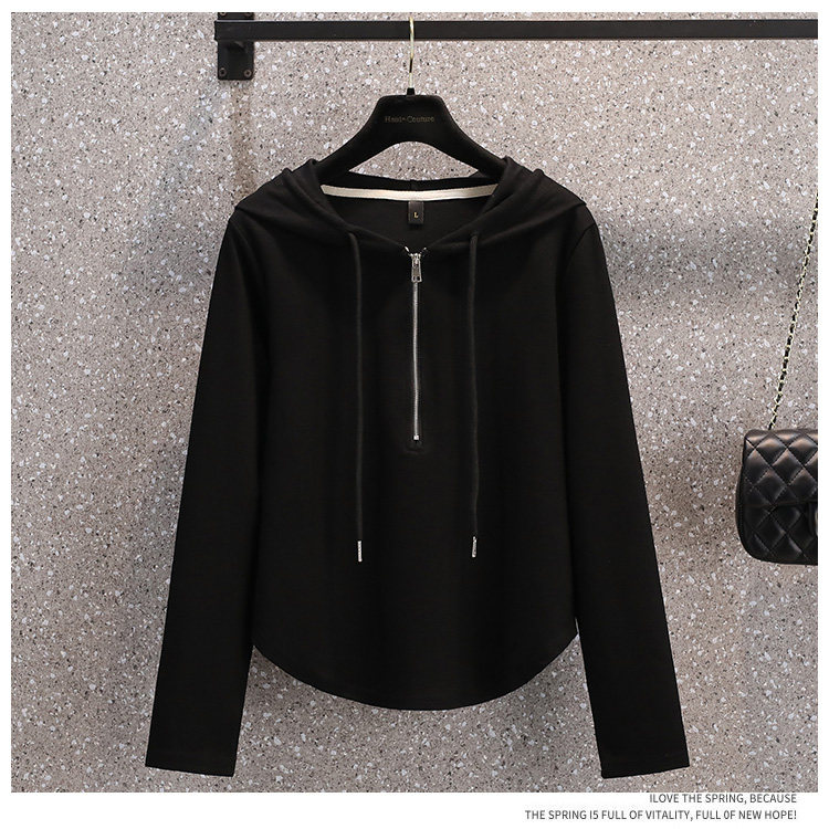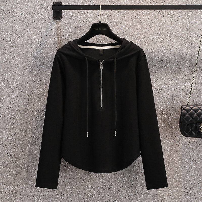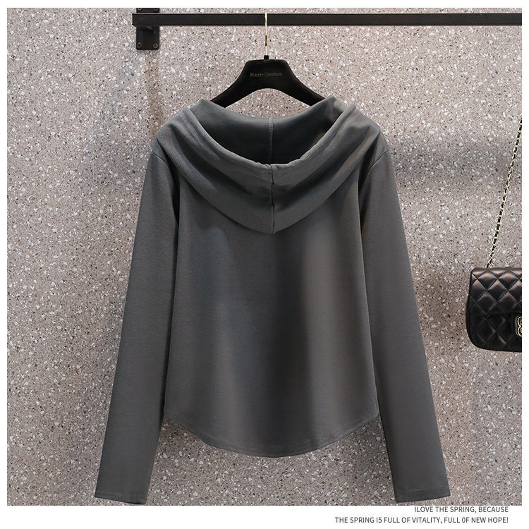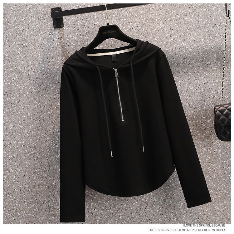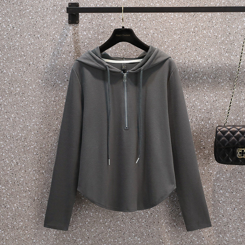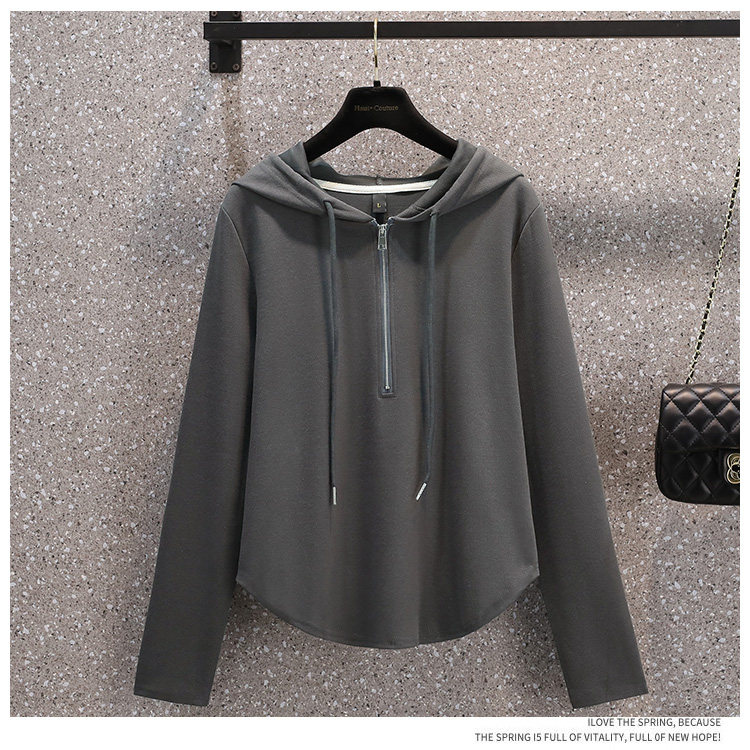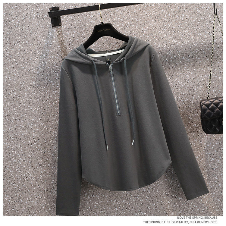 Весенняя толстовка для отдыха с капюшоном, лонгслив с молнией, большой размер, подходит для полных девушек, на молнии